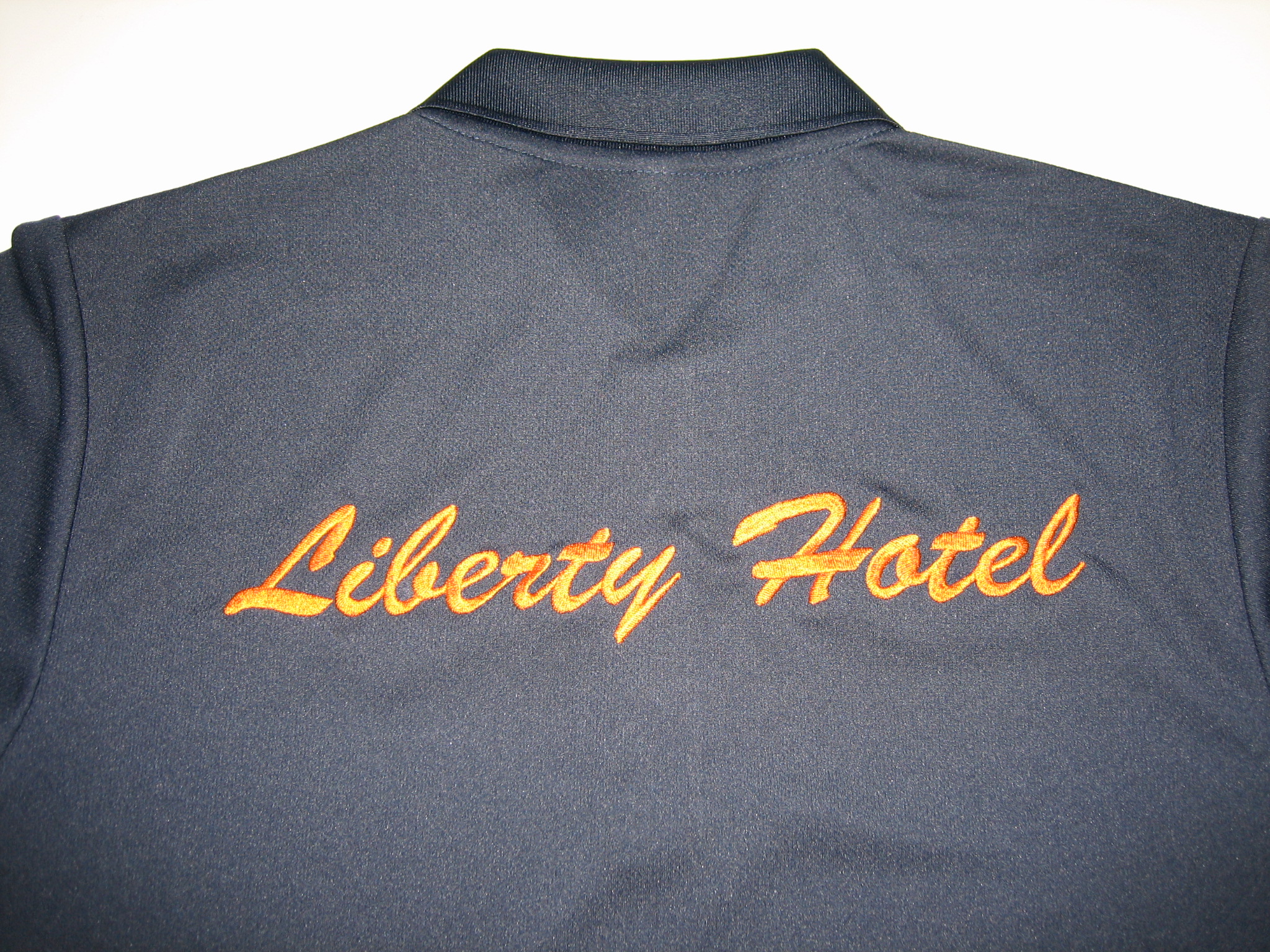 「Liberty Hotel」オリジナルポロシャツ制作事例 商品カテゴリ: 4 商品: 504 利用シーン: 加工位置: 背中 加工サイズ: 横:300㎜×縦:50㎜ 加工方法: 刺繍 カメオカからのコメント: