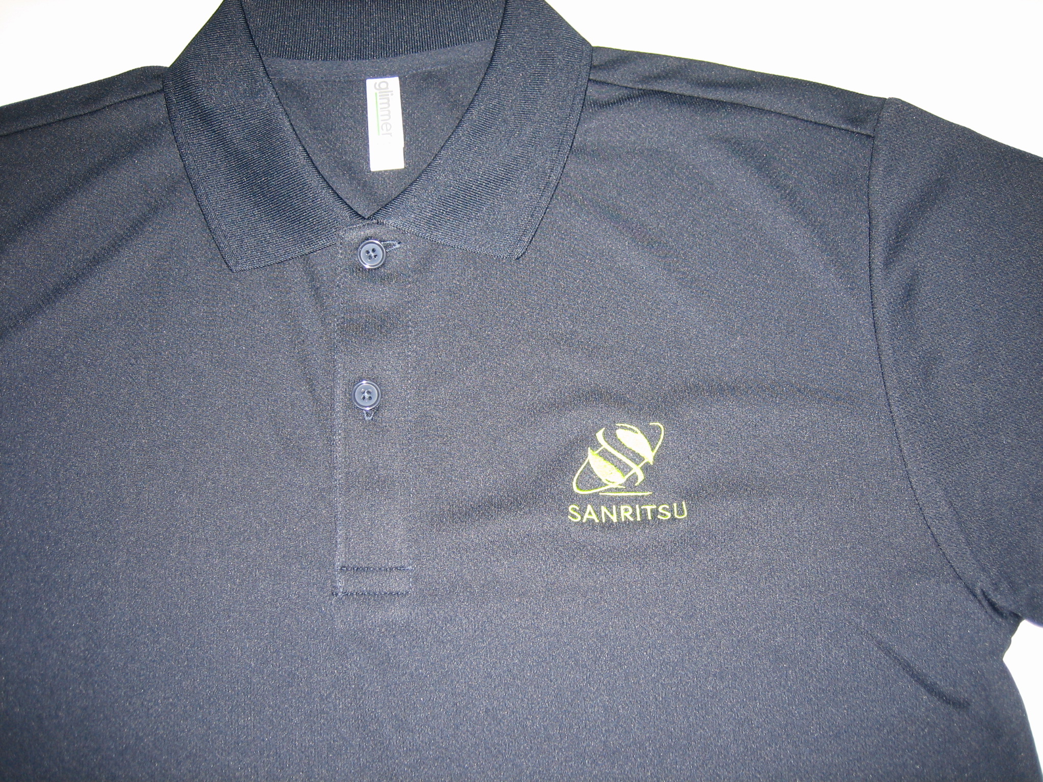 「SANRITSU」オリジナルポロシャツ制作事例 商品カテゴリ: 4 商品: 504 利用シーン: 加工位置: 左胸 加工サイズ: 横:50mm×縦:42mm 加工方法: 刺繍 カメオカからのコメント: