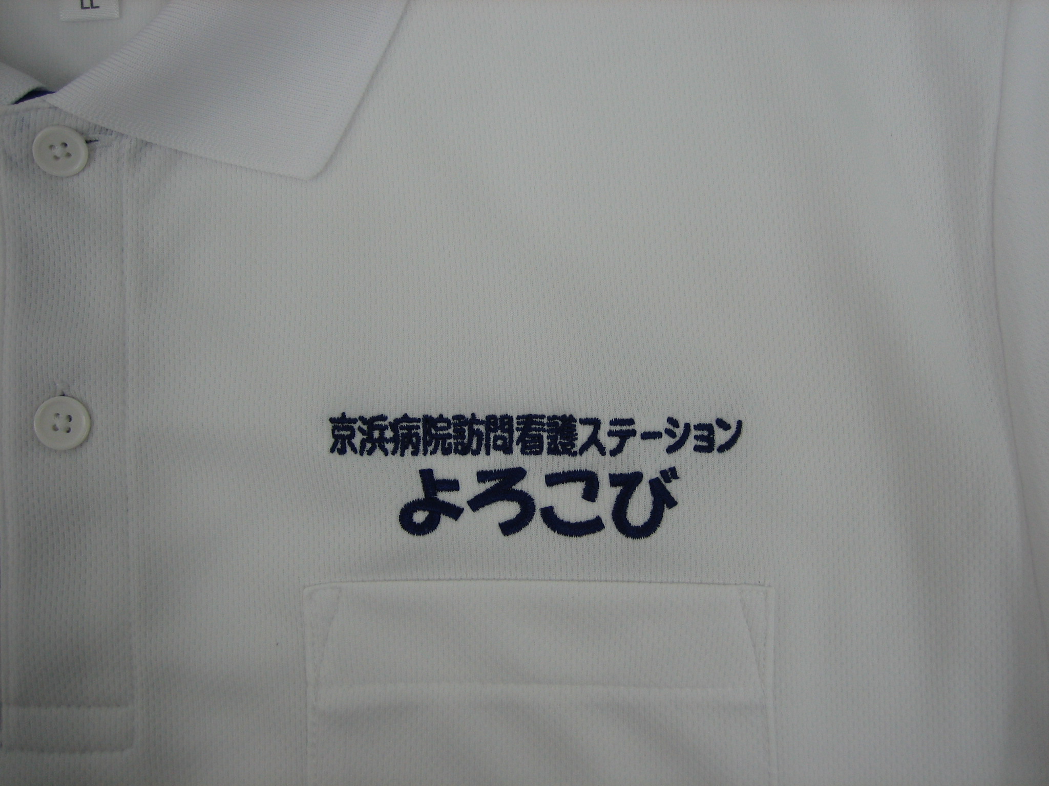 「京浜病院訪問看護ステーション」オリジナルポロシャツ制作事例 商品カテゴリ: 4 商品: 524 利用シーン: 加工位置: 左胸 加工サイズ: 横:100㎜×縦:30㎜ 加工方法: 刺繍 カメオカからのコメント: