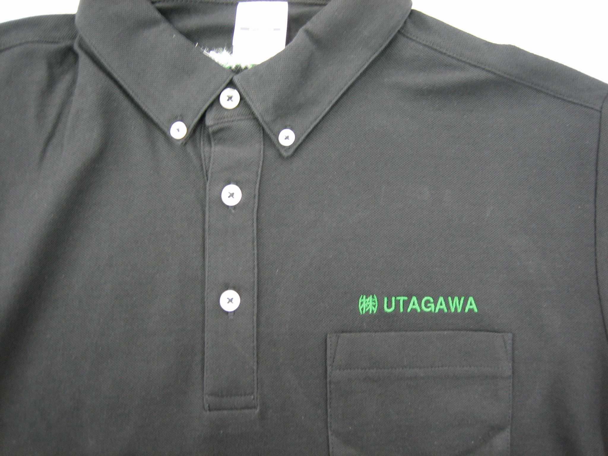 「UTAGAWA」オリジナルポロシャツ制作事例 商品カテゴリ: 4 商品: 829 利用シーン: 加工位置: 左胸・背中衿下 加工サイズ: 左胸:70㎜ 背中衿下:70㎜ 加工方法: 刺繍 カメオカからのコメント: