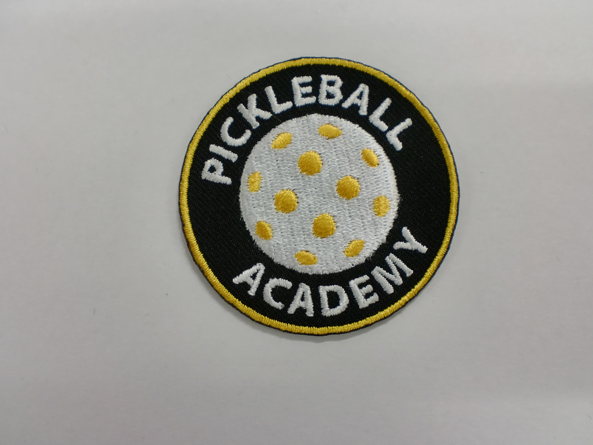 「PICKLEBALL ACADEMY」オリジナル刺繍ワッペン制作事例 商品カテゴリ: 277 商品: 利用シーン: 加工位置: 刺繍 加工サイズ: 横:50㎜×縦:50㎜ 加工方法: オリジナルワッペン カメオカからのコメント: