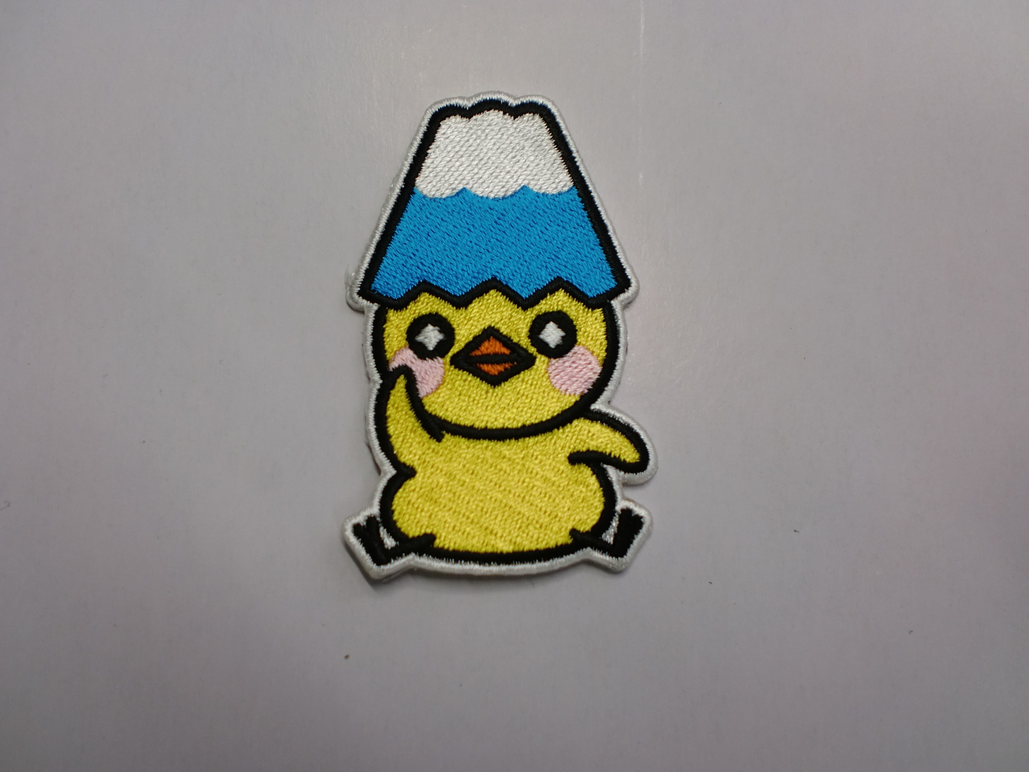 「富士山キャップひよ」オリジナル刺繍ワッペン制作事例 商品カテゴリ: 277 商品: 利用シーン: 加工位置: 刺繍 加工サイズ: 横:43㎜×縦:68㎜ 加工方法: オリジナルワッペン カメオカからのコメント: