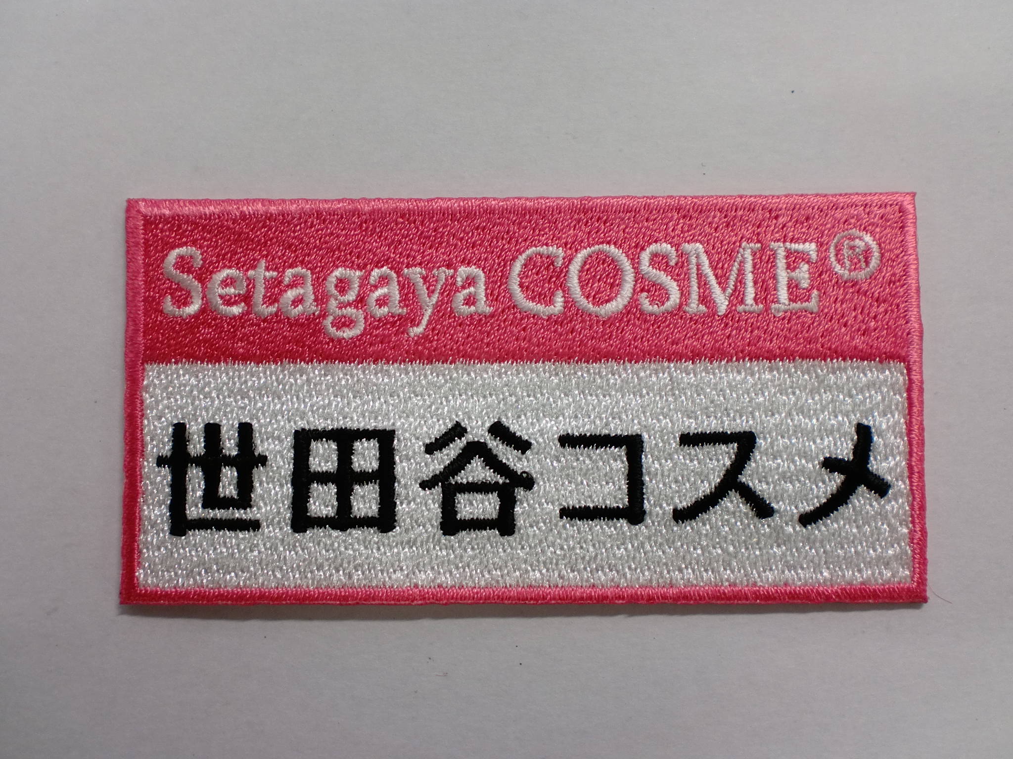 「Setagaya COSME 世田谷コスメ」オリジナル刺繍ワッペン制作事例 商品カテゴリ: 277 商品: 利用シーン: 加工位置: 刺繍 加工サイズ: 横:80㎜×縦:40㎜ 加工方法: オリジナルワッペン カメオカからのコメント: