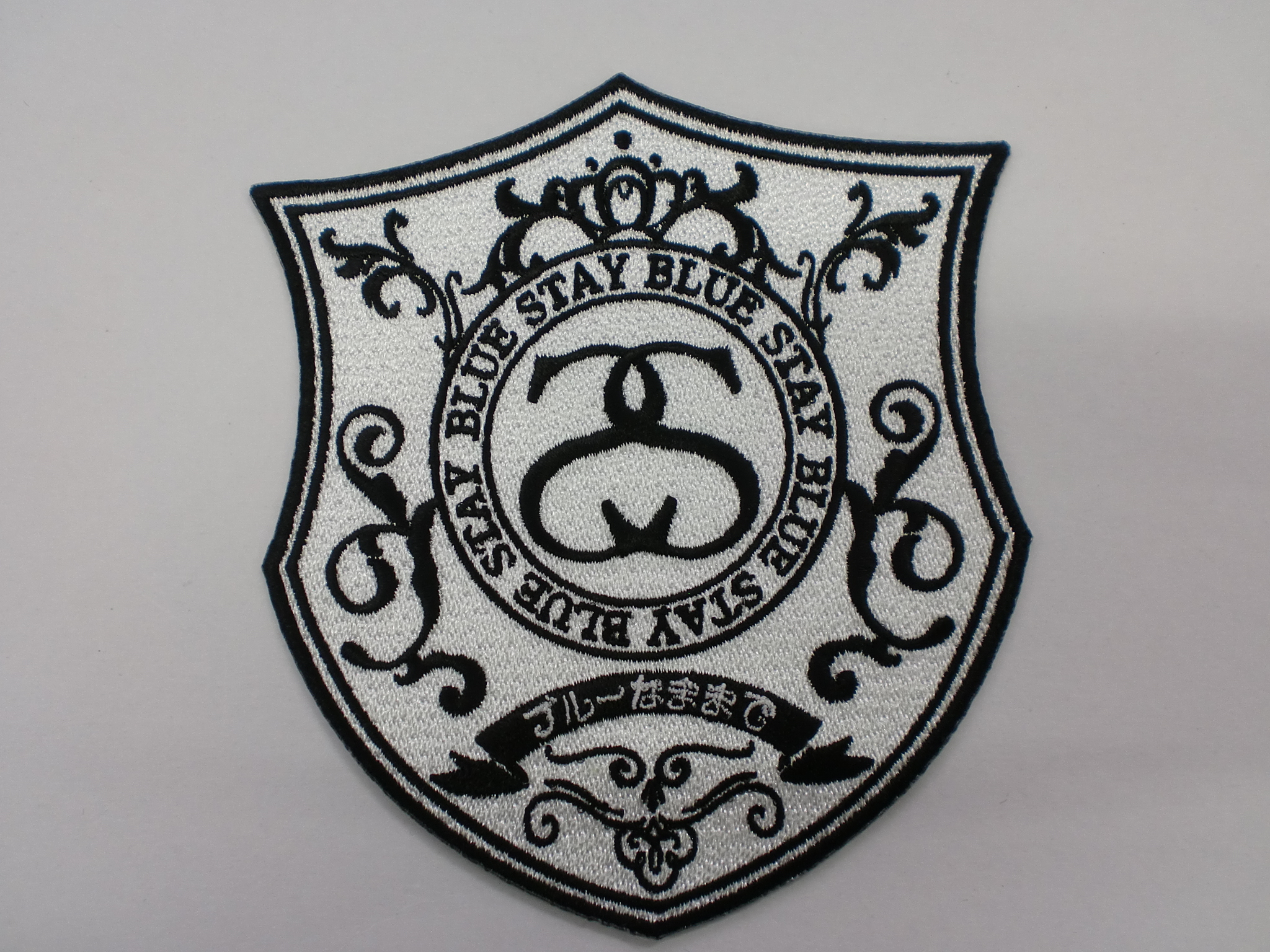 「STAY BLUEアラベスク・エンブレム」オリジナル刺繍ワッペン制作事例
