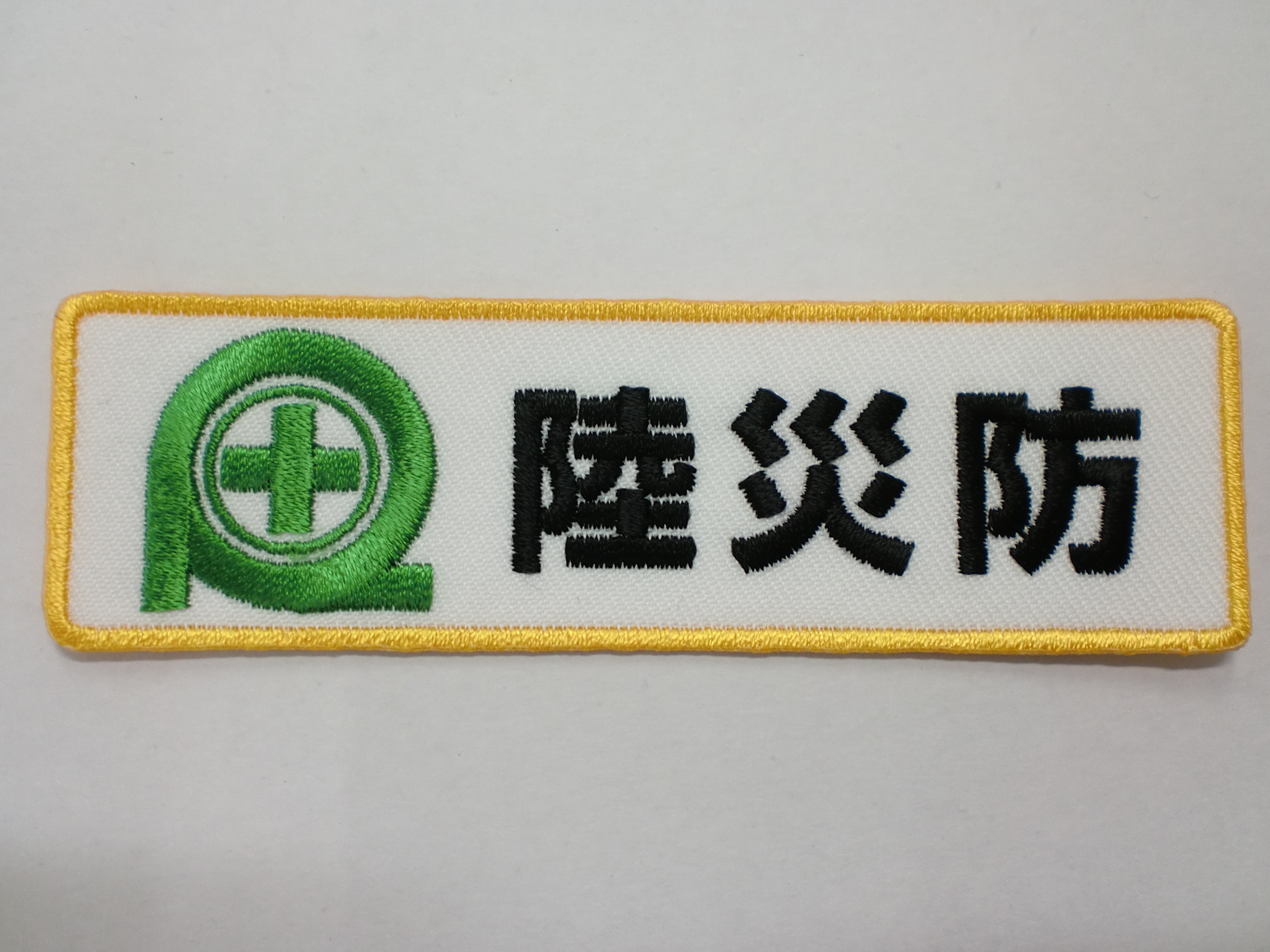「陸災防ロゴ」オリジナルワッペン制作事例 商品カテゴリ: 277 商品: 768 利用シーン: 130 加工位置: 刺繍 加工サイズ: 横:100mm×縦:30mm 加工方法: オリジナルワッペン カメオカからのコメント: 横10cmのオリジナル刺繍ワッペン。土台はアーバンツイルホワイトを使用しています。 やっぱり刺繍は立体感があってカッコいいですね! ロゴマークの細かな部分もきれいに表現することができました。