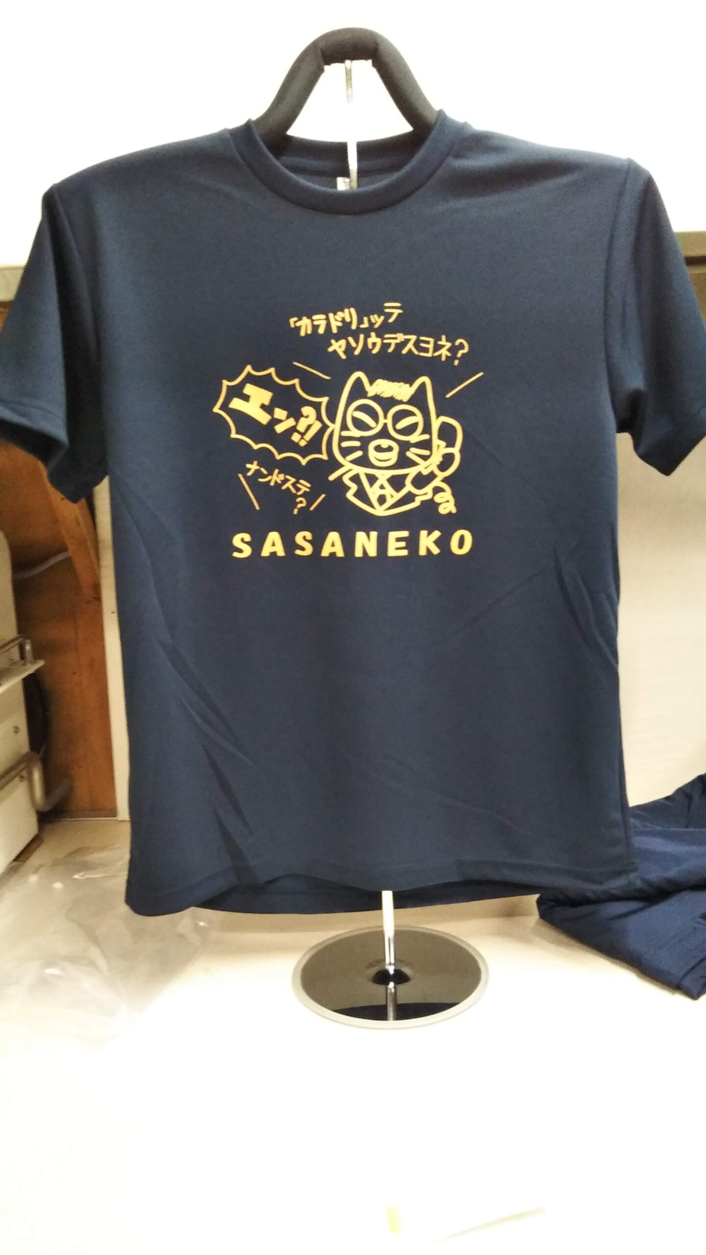 「SASANEKO」オリジナルTシャツ制作事例 商品カテゴリ: 8 商品: 531 利用シーン: 加工位置: 胸全面 加工サイズ: 横:240mm×縦:219mm 加工方法: プリント カメオカからのコメント: