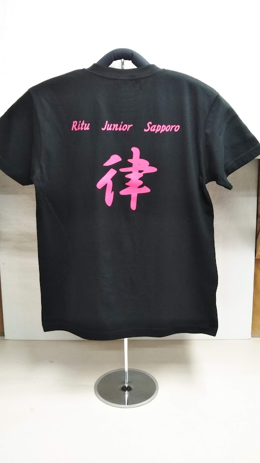 「Ritu Junior Sapporo 律」オリジナルTシャツ制作事例 商品カテゴリ: 8 商品: 利用シーン: 加工位置: 背中 加工サイズ: 横:280mm × 縦:220mm 加工方法: プリント カメオカからのコメント: