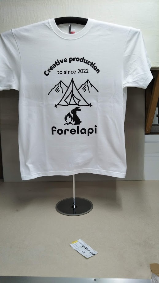 「Creative production Forelapi」オリジナルTシャツ制作事例 商品カテゴリ: 8 商品: 2610 利用シーン: 加工位置: 胸全面・背中右肩 加工サイズ: 横:249mm × 縦:350mm 横:53mm × 縦:70mm 加工方法: プリント カメオカからのコメント:
