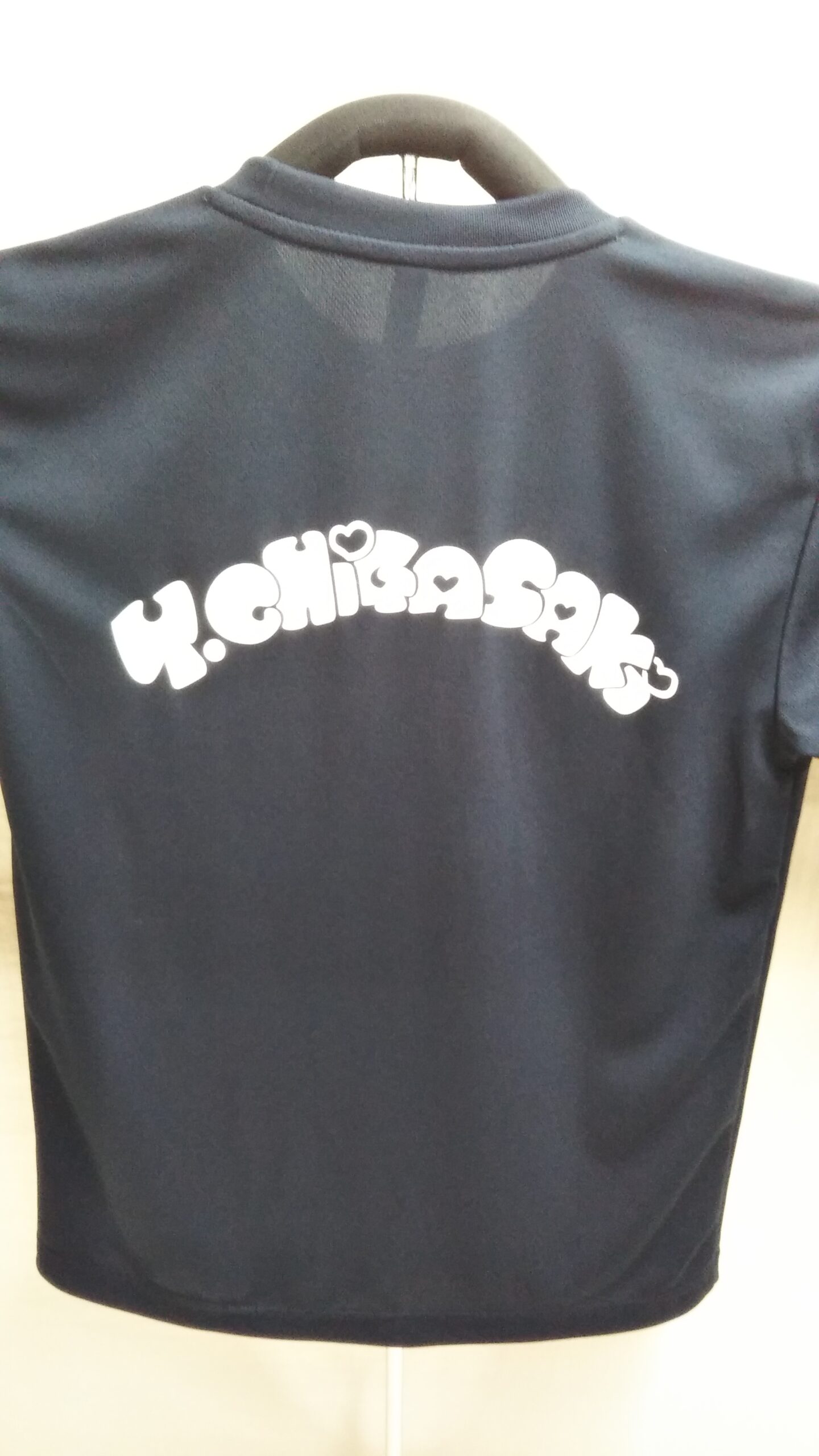 「Y.CHIGASAKI」オリジナルTシャツ制作事例 DSC_0050 DSC_0051 商品カテゴリ: 8 商品: 531 利用シーン: 130 加工位置: 左胸・背中 加工サイズ: 左胸/縦:100mm・背中/横:300mm 加工方法: オリジナルシルクプリント カメオカからのコメント: 大人気商品00300-ACTドライTシャツの左胸と背中にオリジナルプリントを入れました。とってもかわいいデザインですね!背中の文字はお客様オリジナルのフォントです。