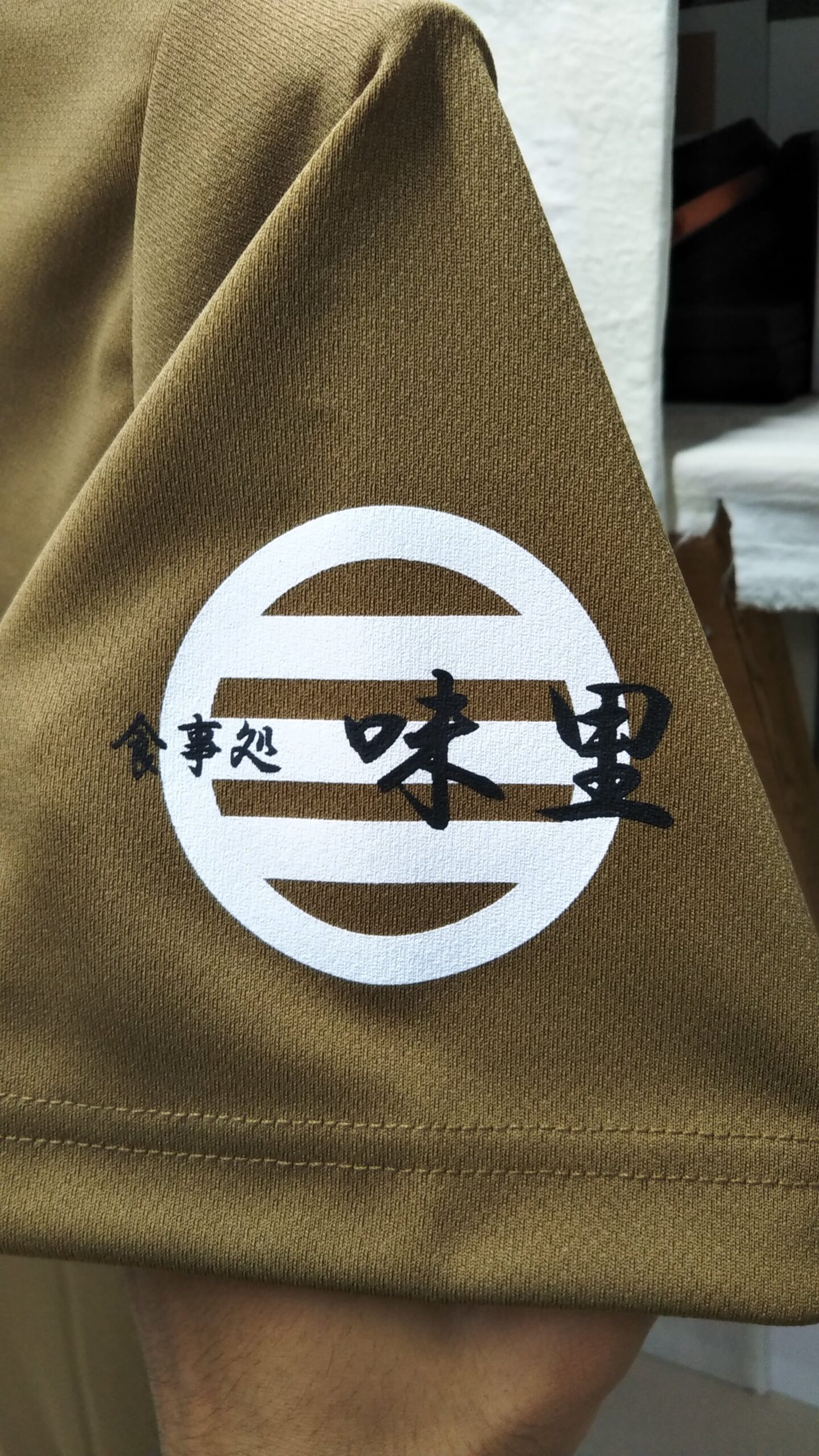 「食事処 味里」オリジナルTシャツ制作事例 DSC_3002 DSC_3003 DSC_3004 商品カテゴリ: 8 商品: 531 利用シーン: 加工位置: 左胸・左袖 加工サイズ: 胸 横:75㎜×縦:75㎜ 袖 横:80㎜×縦:67㎜ 加工方法: プリント カメオカからのコメント: