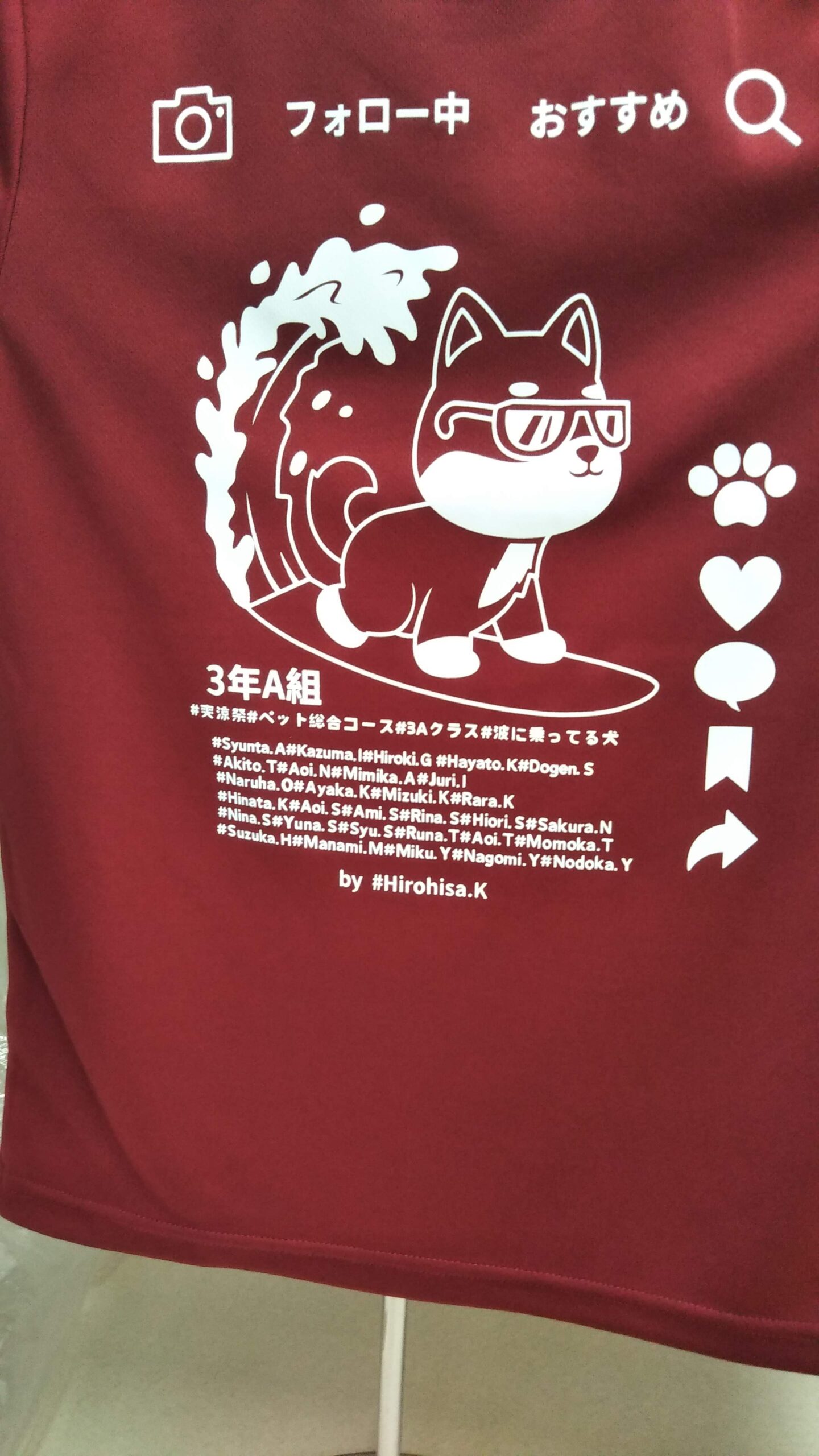 「アニマルイラスト3年A組」オリジナルTシャツ制作事例 DSC_3928 商品カテゴリ: 8 商品: 531 利用シーン: 加工位置: 背中 加工サイズ: 横:246㎜×縦:300㎜ 加工方法: プリント カメオカからのコメント: