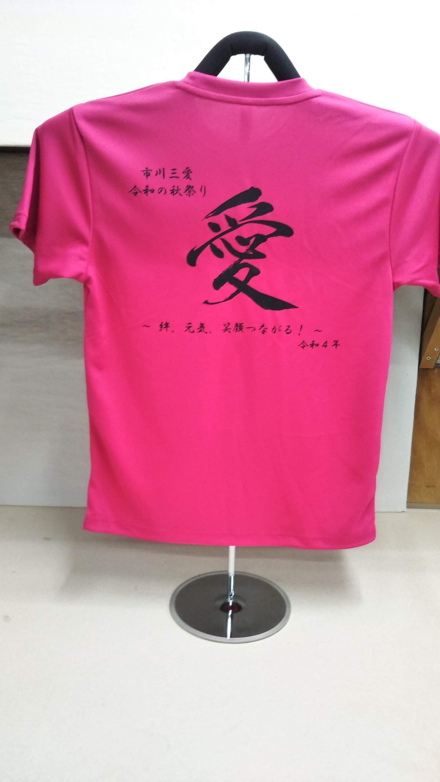 「市川三愛」オリジナルTシャツ制作事例 DSC_0694 商品カテゴリ: 8 商品: 531 利用シーン: 加工位置: 背中 加工サイズ: 横:300㎜×縦:239㎜ 加工方法: プリント カメオカからのコメント: