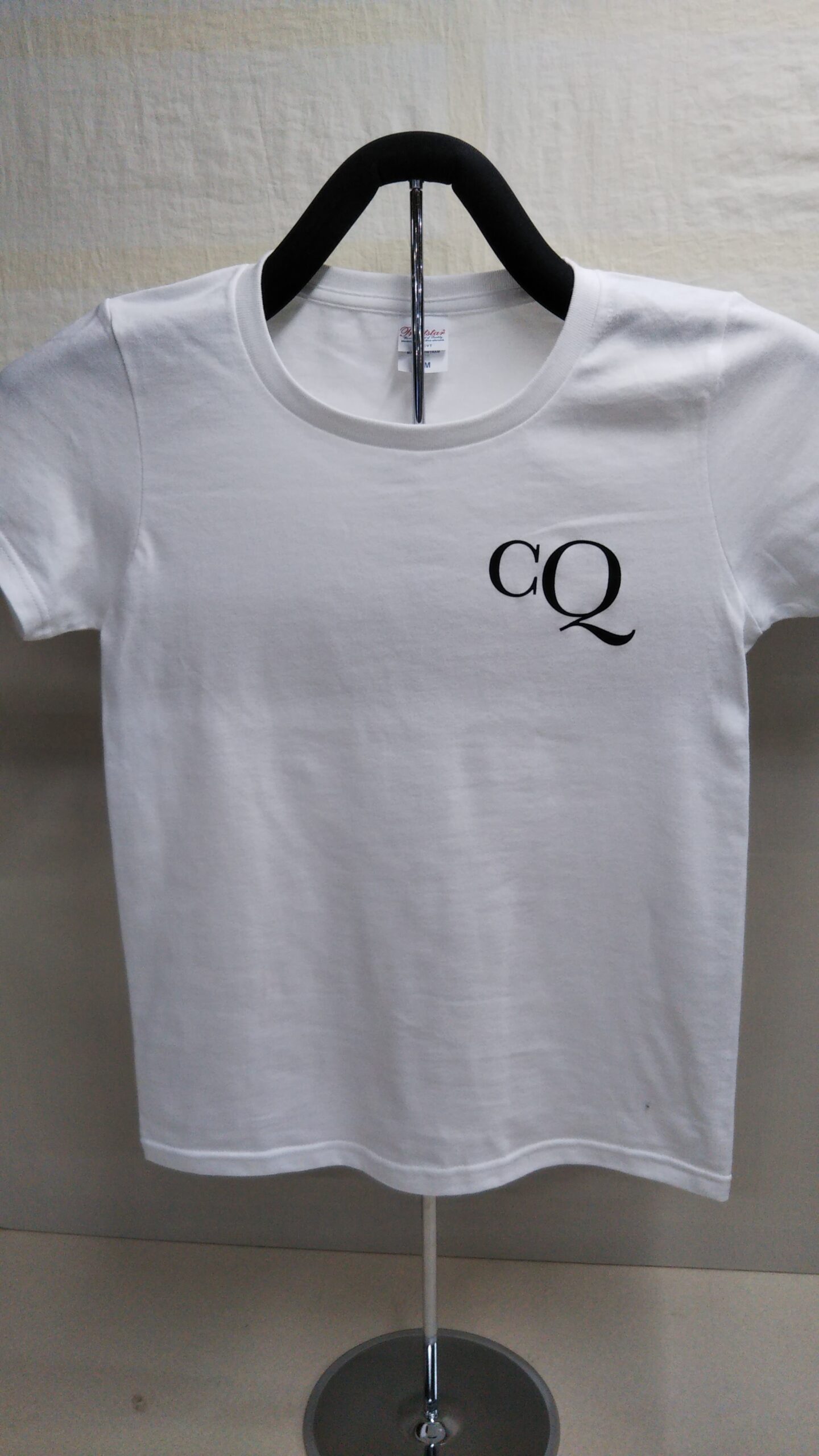 「CQロゴ」オリジナルTシャツ制作事例 商品カテゴリ: 8 商品: 1306 利用シーン: 加工位置: 左胸 加工サイズ: 横:95㎜×縦:63㎜ 加工方法: オリジナルシルクプリント カメオカからのコメント: 大人気アイテム00085-CVTヘビーウエイトTシャツの左胸にシルクプリントを入れました。ホワイトTシャツにブラック印刷ですが、人気のカラーチョイスです。