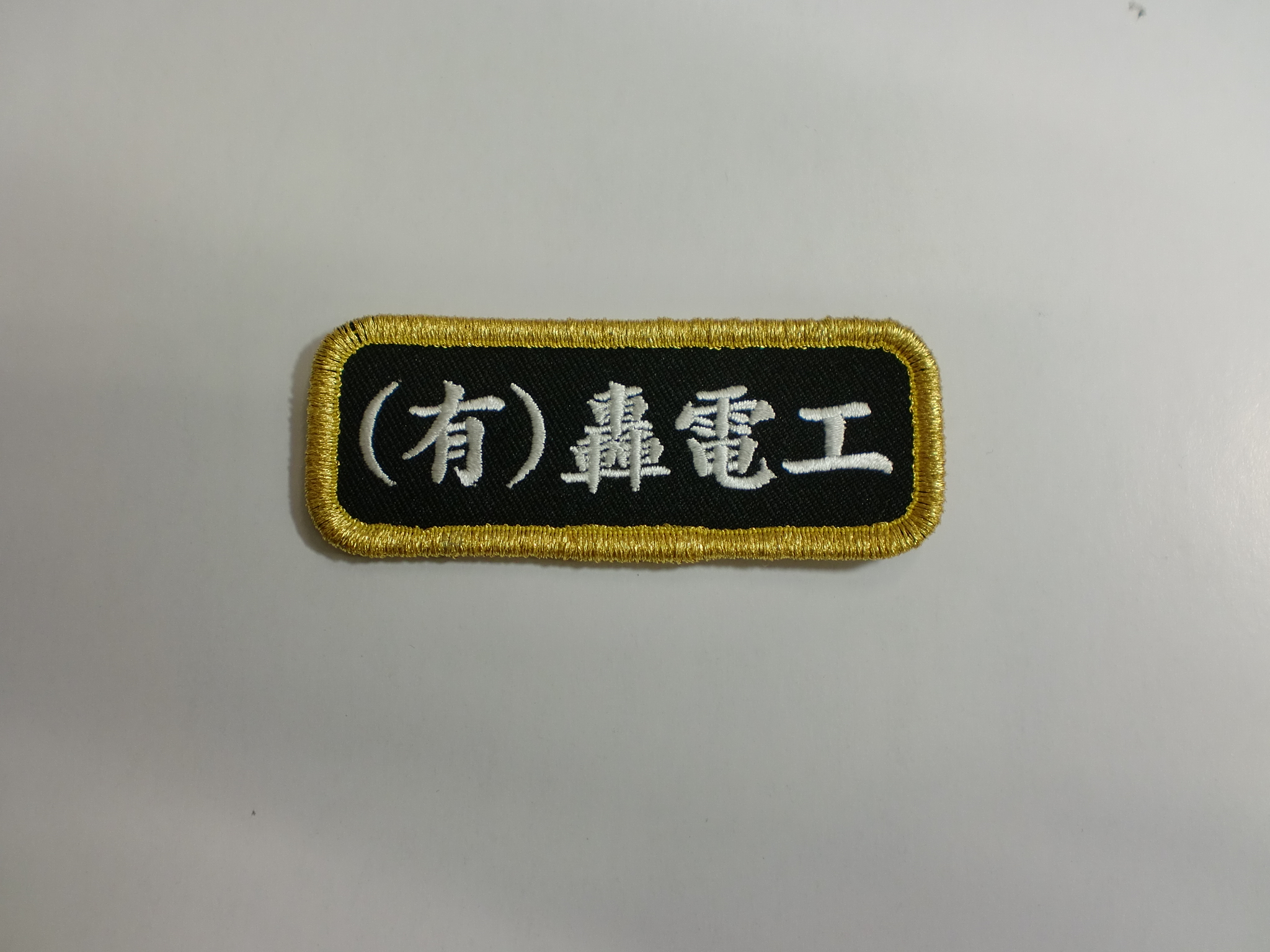 「(有)轟電工」ネーム刺繍ワッペン制作事例 商品カテゴリ: 277 商品: 利用シーン: 加工位置: 刺繍 加工サイズ: 横:83㎜×縦:32㎜ 加工方法: ネーム刺繍ワッペン カメオカからのコメント: