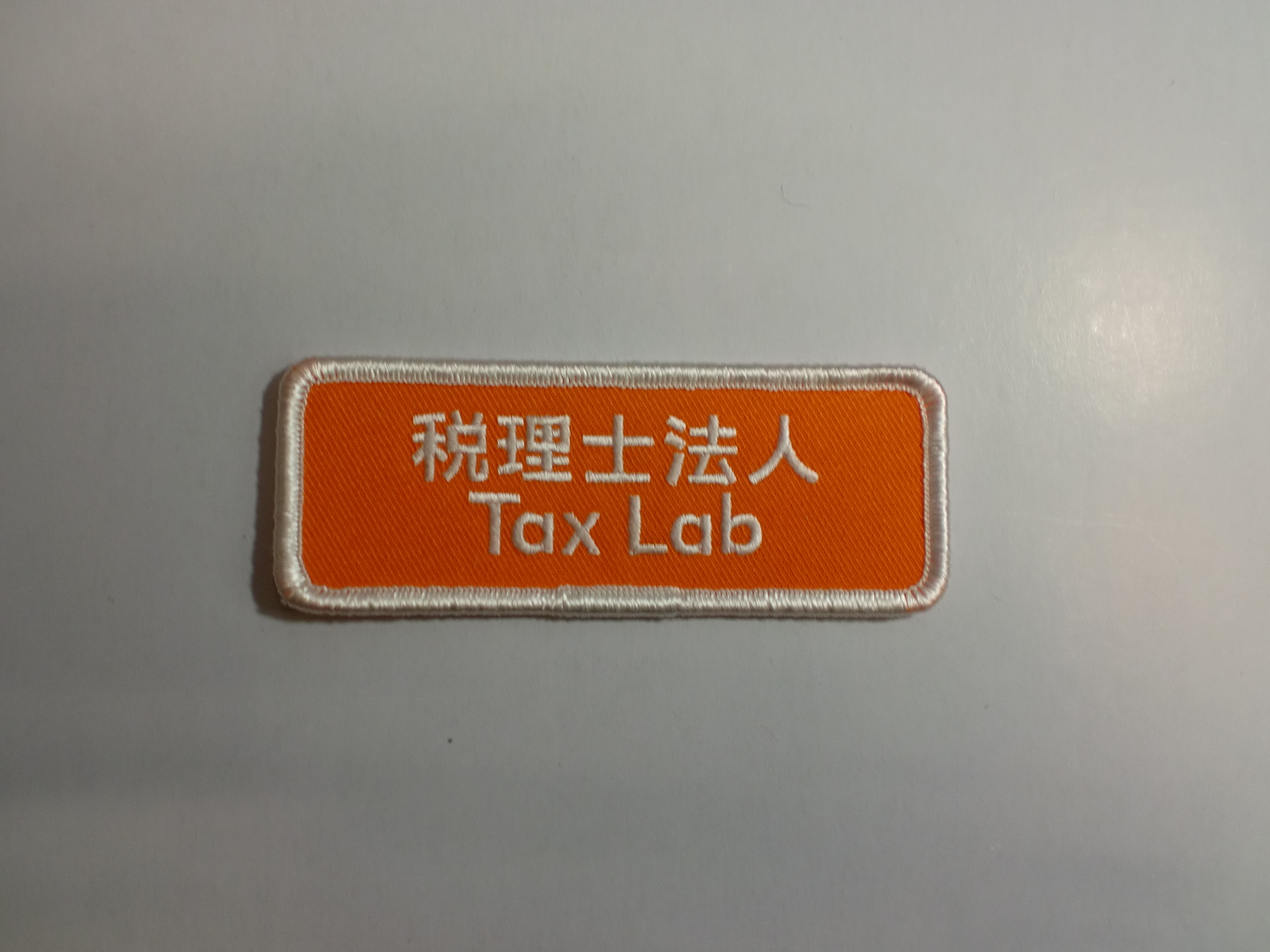 「税理士法人 Tax Lab」ロゴネームワッペン制作事例 商品カテゴリ: 277 商品: 利用シーン: 加工位置: 刺繍 加工サイズ: 横:93㎜×縦:35㎜ 加工方法: ロゴネームワッペン カメオカからのコメント: