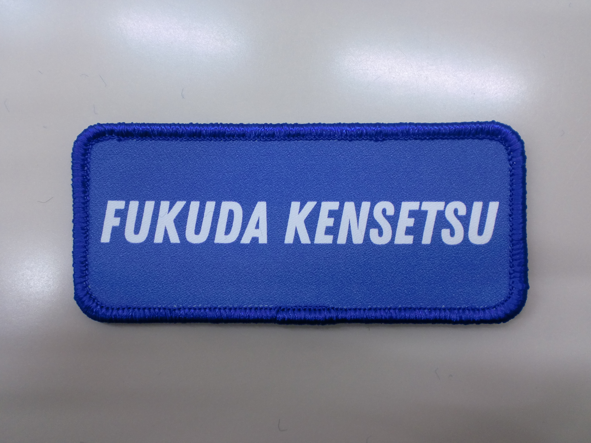 「FUKUDA KENSETSU」転写プリントワッペン制作事例 商品カテゴリ: 277 商品: 利用シーン: 加工位置: プリント 加工サイズ: 8:長方形 角丸 加工方法: 転写プリントワッペン カメオカからのコメント: