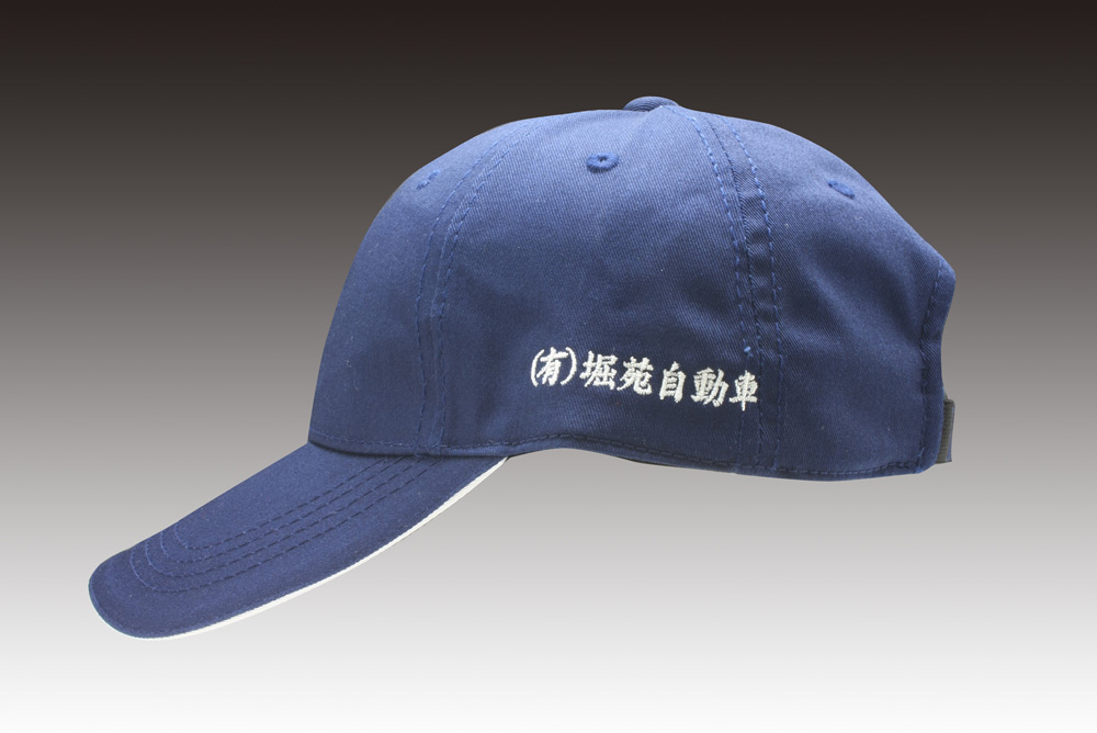 「(有)堀苑自動車」オリジナルキャップ制作事例 商品カテゴリ: 2 商品: 294 利用シーン: 加工位置: サイド 加工サイズ: 加工方法: 刺繍 カメオカからのコメント: 左サイドで楷書体で文字のみ刺繍です。企業様では定番のパターンですね!