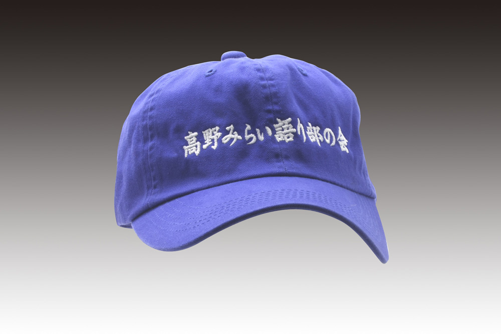 「高野みらい語り部の会」オリジナルキャップ制作事例 商品カテゴリ: 2 商品: 309 利用シーン: 加工位置: フロント 加工サイズ: 加工方法: 刺繍 カメオカからのコメント: 文字のみの刺繍です。シンプルですが、キャップ製作では、失敗の少ない定番のスタイルです。