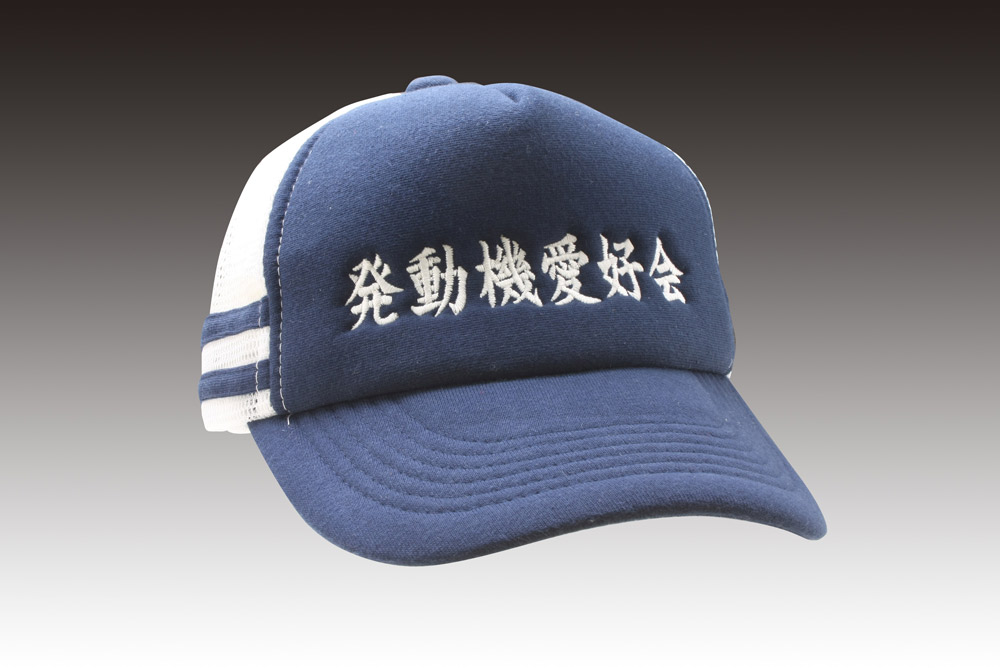 「発動機愛好会」オリジナルキャップ制作事例 商品カテゴリ: 2 商品: 利用シーン: 加工位置: フロント 加工サイズ: 加工方法: 刺繍 カメオカからのコメント: フロントに文字のみ刺繍を入れました。書き順も表現されており素晴らしい仕上がりになりました。