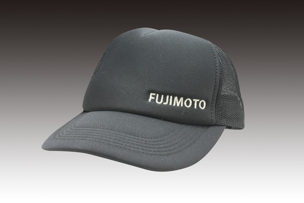 「FUJIMOTO]オリジナルキャップ制作事例 商品カテゴリ: 2 商品: 291 利用シーン: 加工位置: フロント 加工サイズ: 加工方法: 刺繍 カメオカからのコメント: フロントの端に刺繍を入れました。