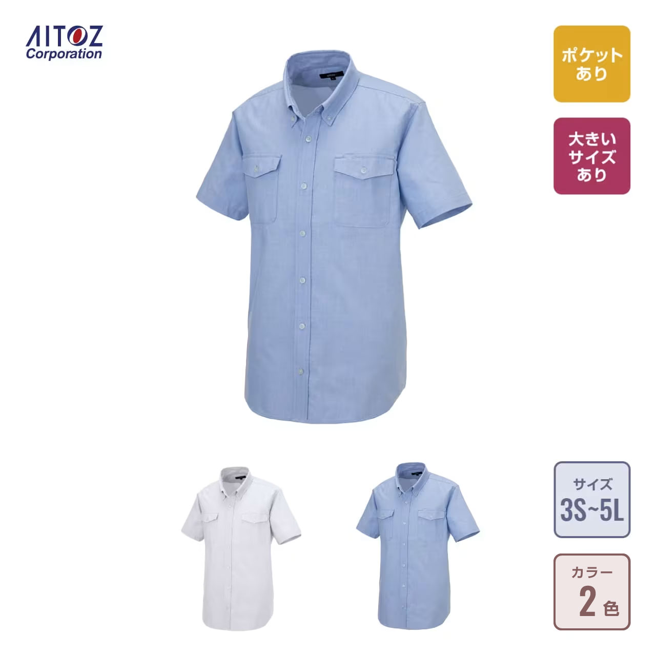 メンズ半袖オックスボタンダウンシャツ(両ポケットフラップ付)