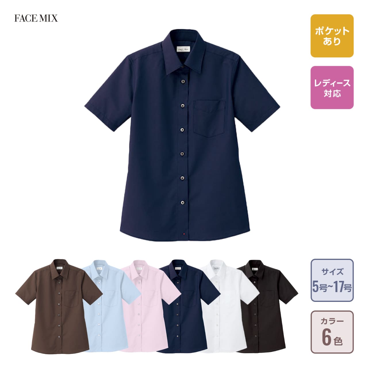 レディスレギュラーカラー半袖ブラウス