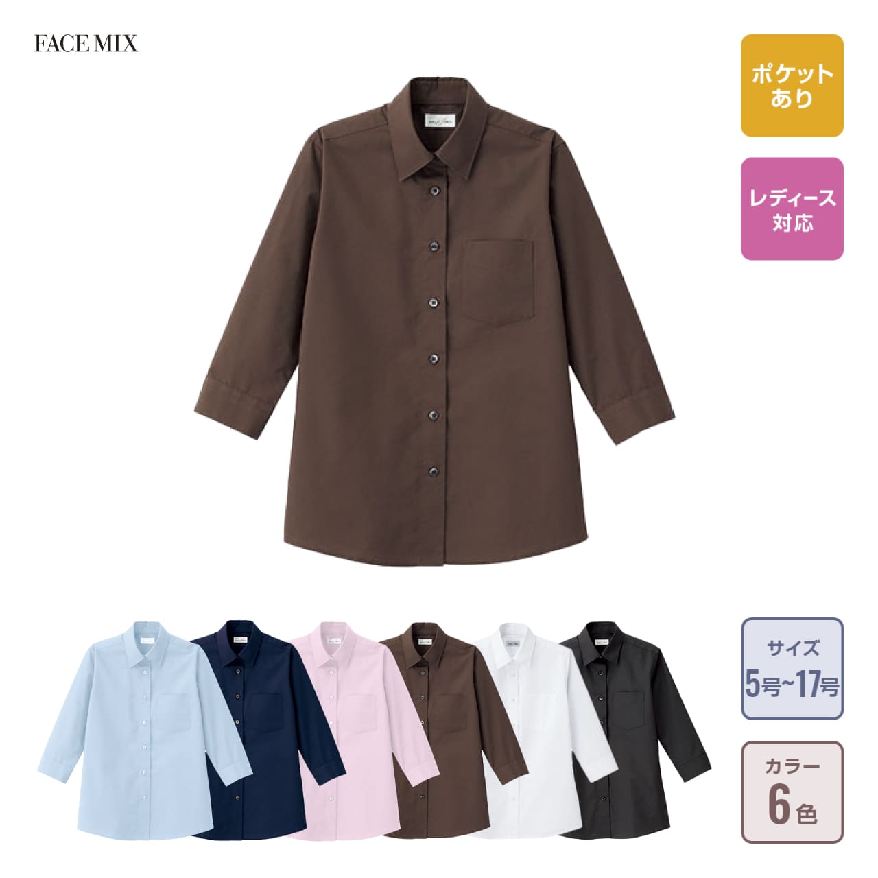 レディスレギュラーカラー七分袖ブラウス