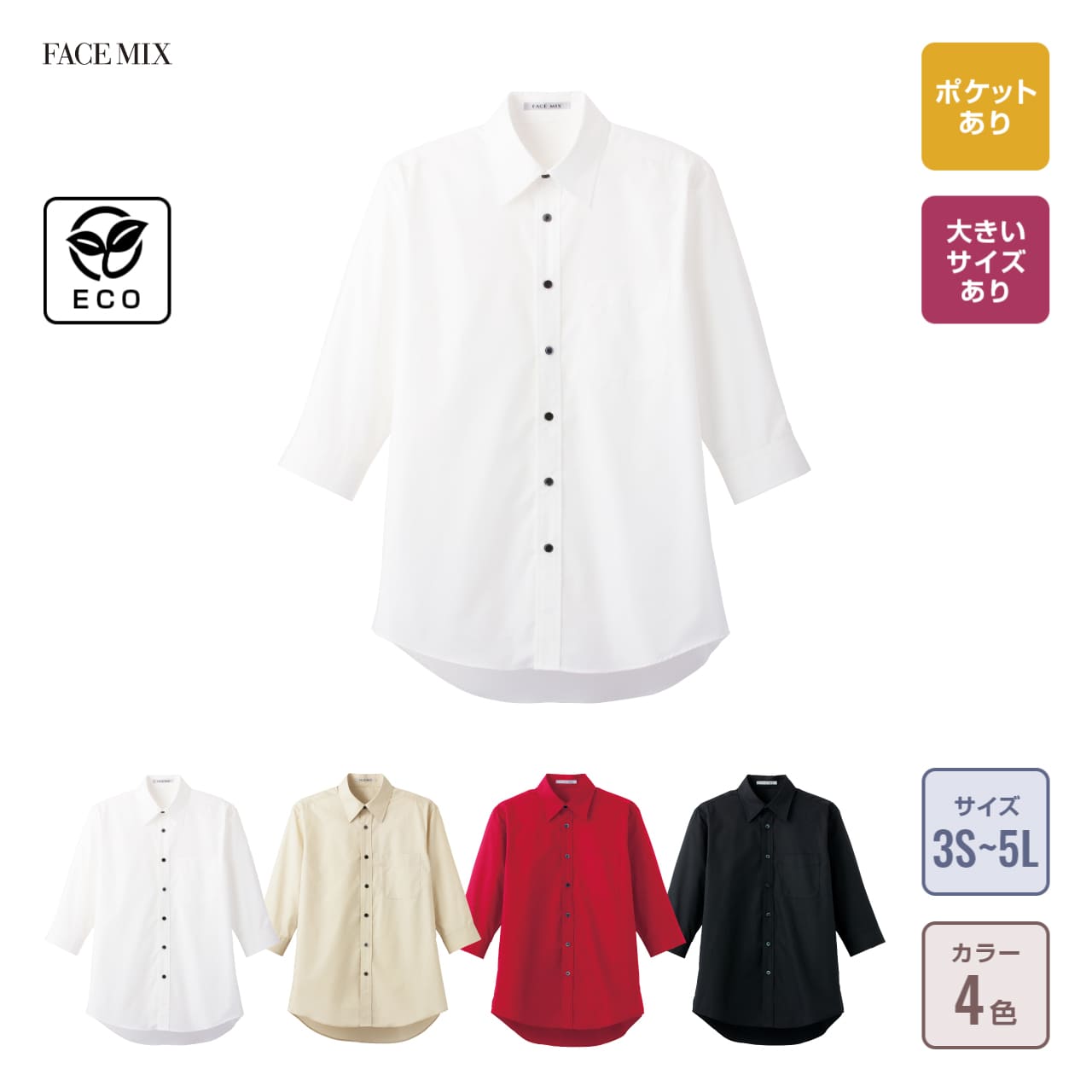 ブロードレギュラーカラー七分袖シャツ