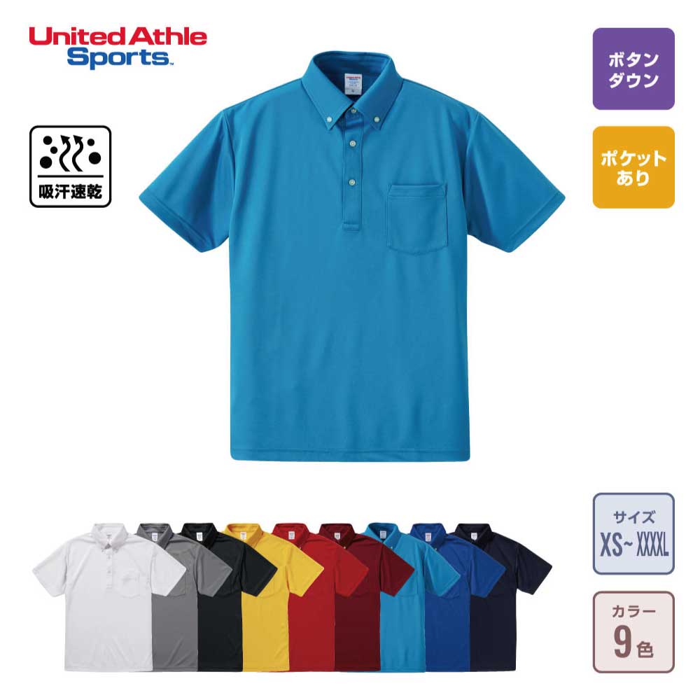 4.1オンスドライアスレチックポロシャツ(ボタンダウン)(ポケット付)