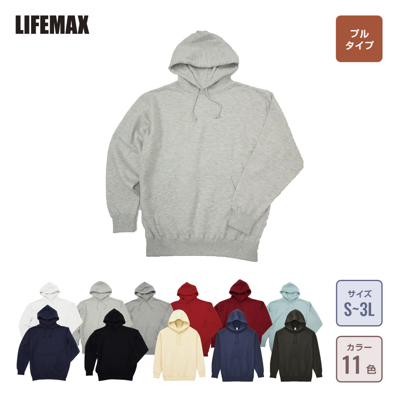 10オンスフードプルパーカー(裏パイル)