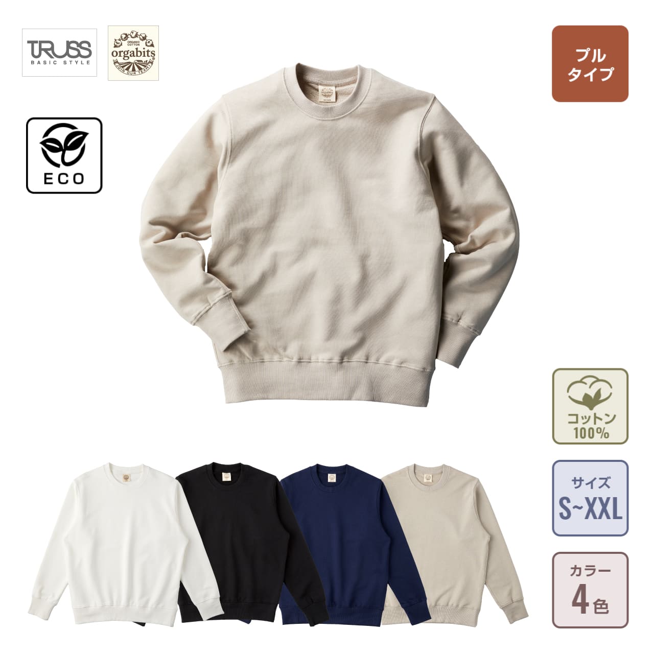 オーガニックコットンスウェットシャツ