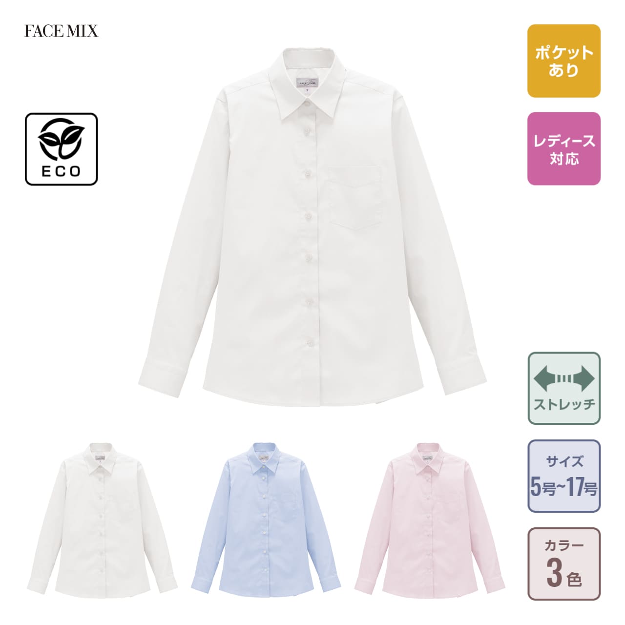 レディスレギュラーカラー長袖ブラウス