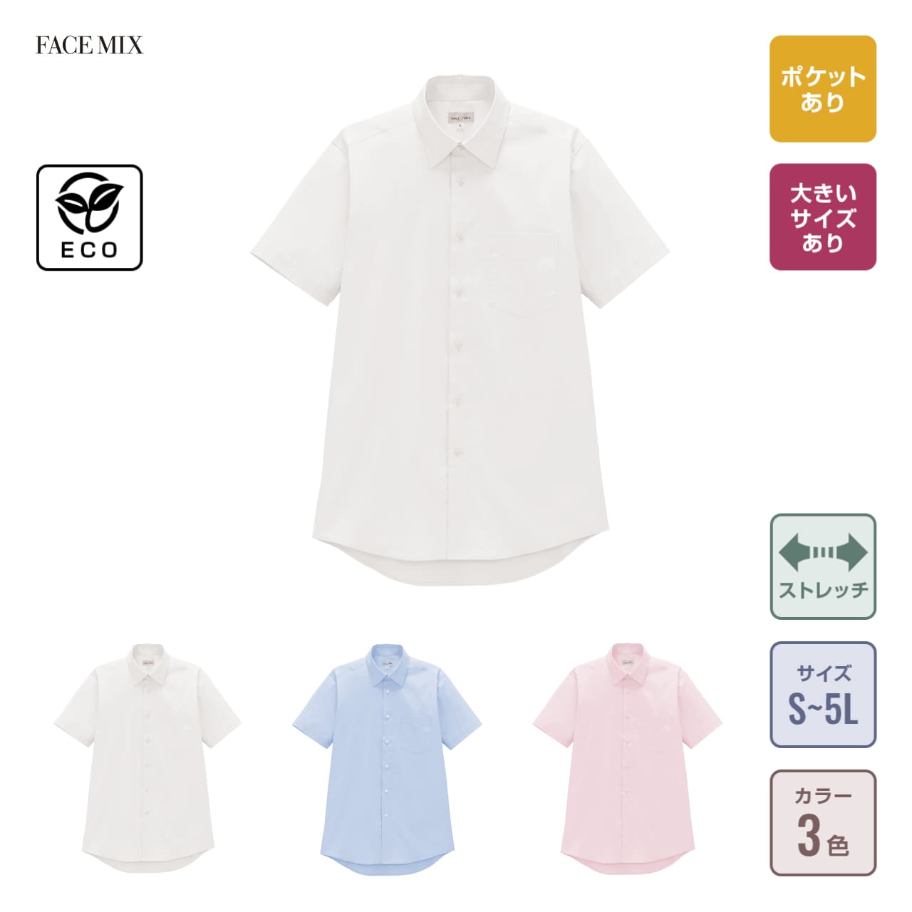 メンズレギュラーカラー半袖シャツ
