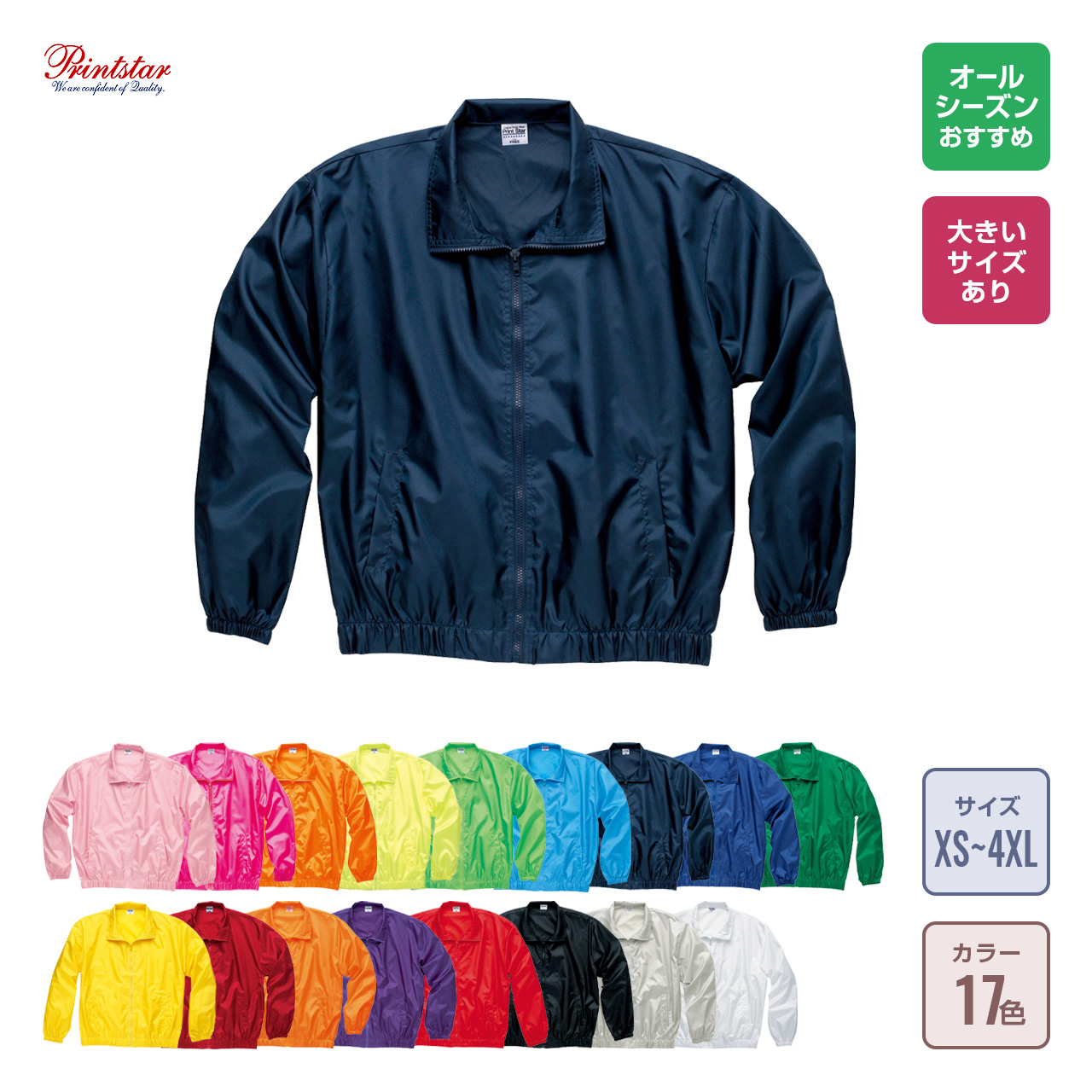※前がジップで分かれている商品は胸全面は加工できません。