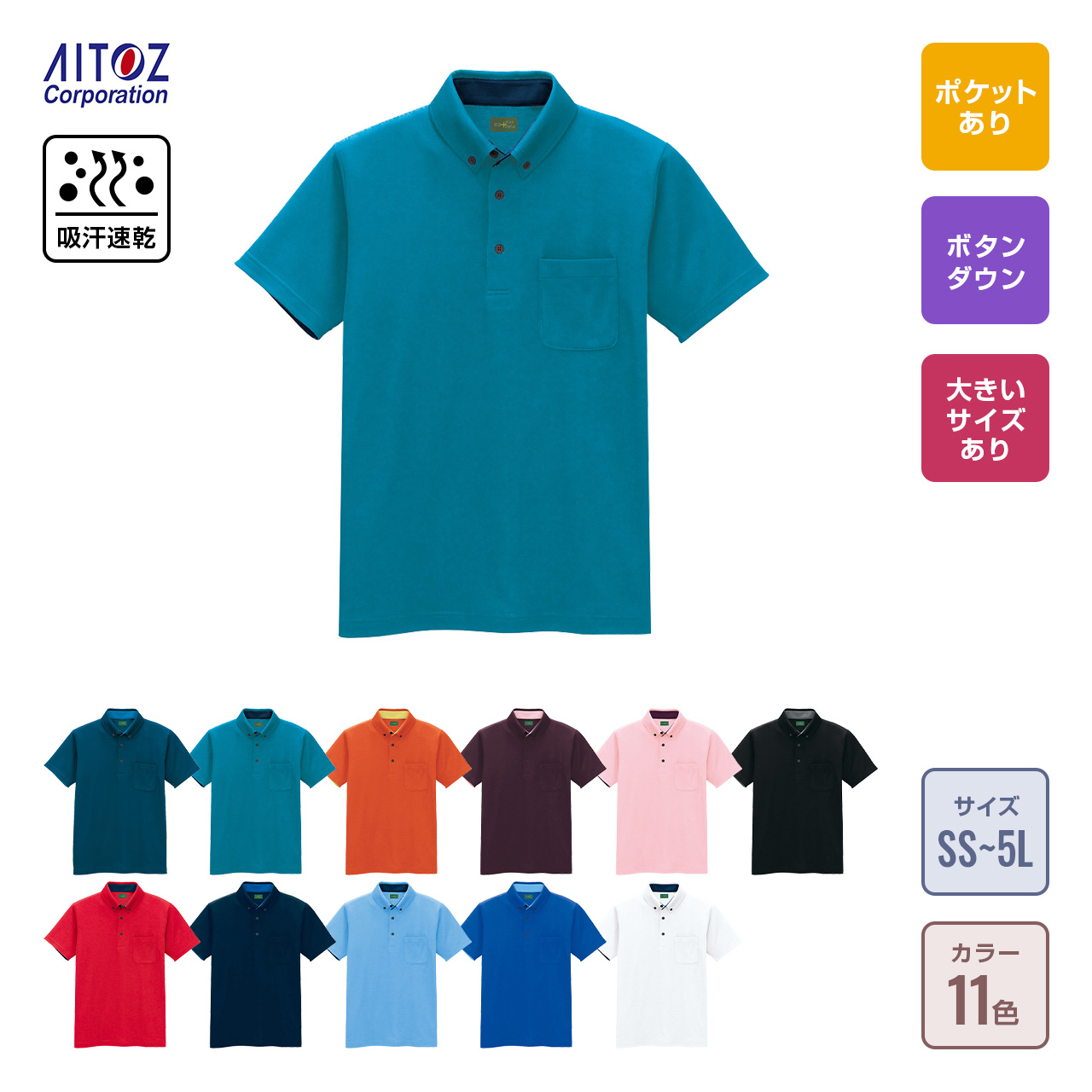 制電半袖ボタンダウンポロシャツ(男女兼用)