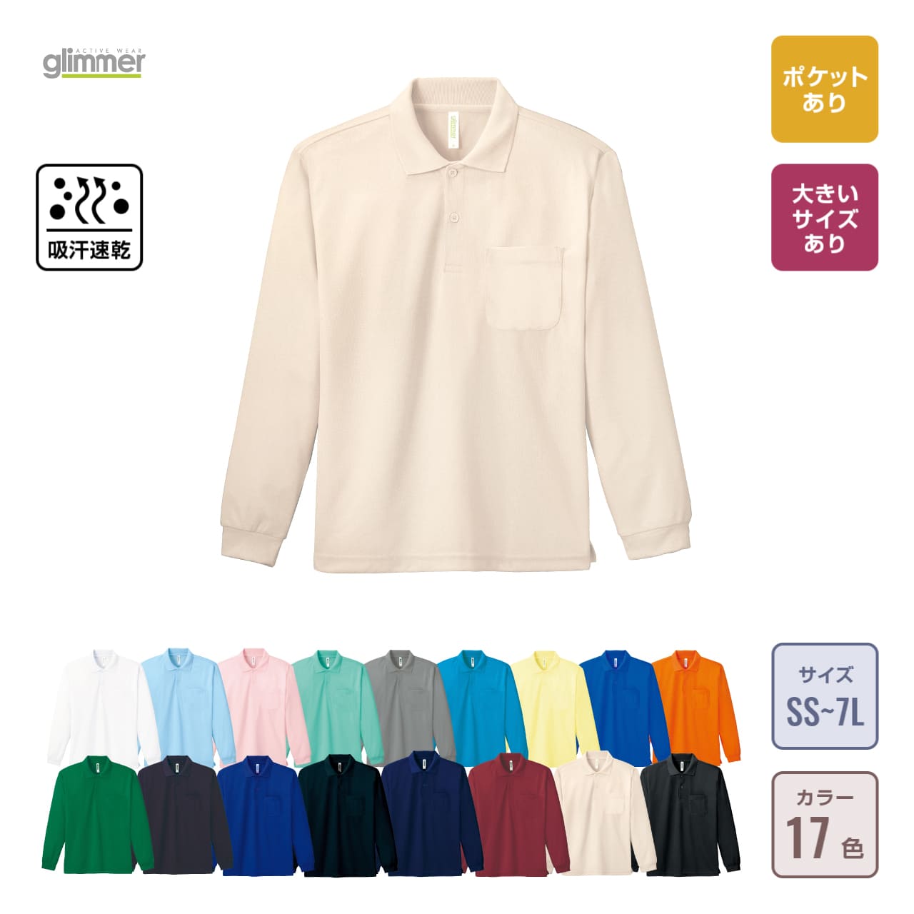 ドライ長袖ポロシャツ(ポケット付)