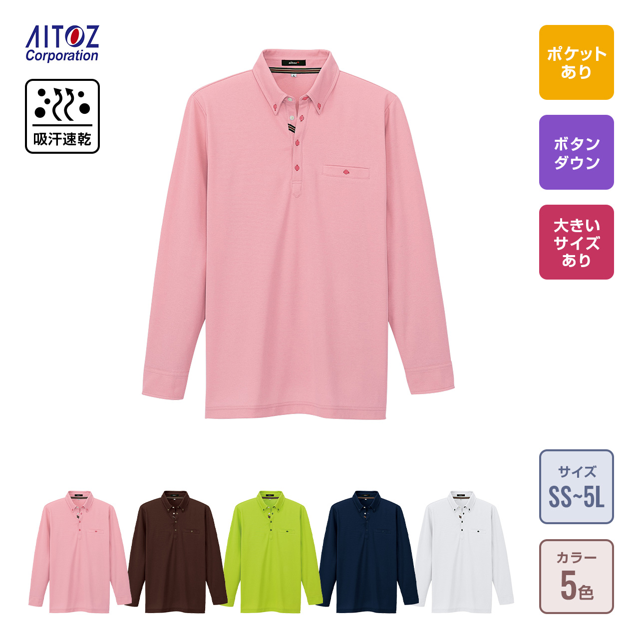 部屋干しボタンダウン長袖ポロシャツ(男女兼用)