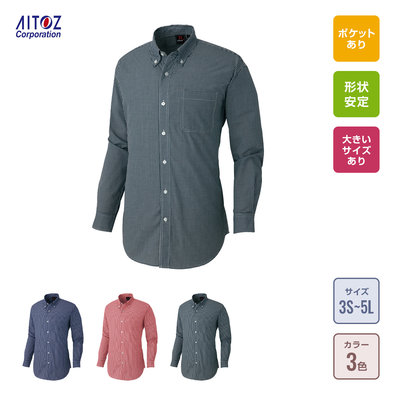 長袖ギンガムチェックボタンダウンシャツ(男女兼用)