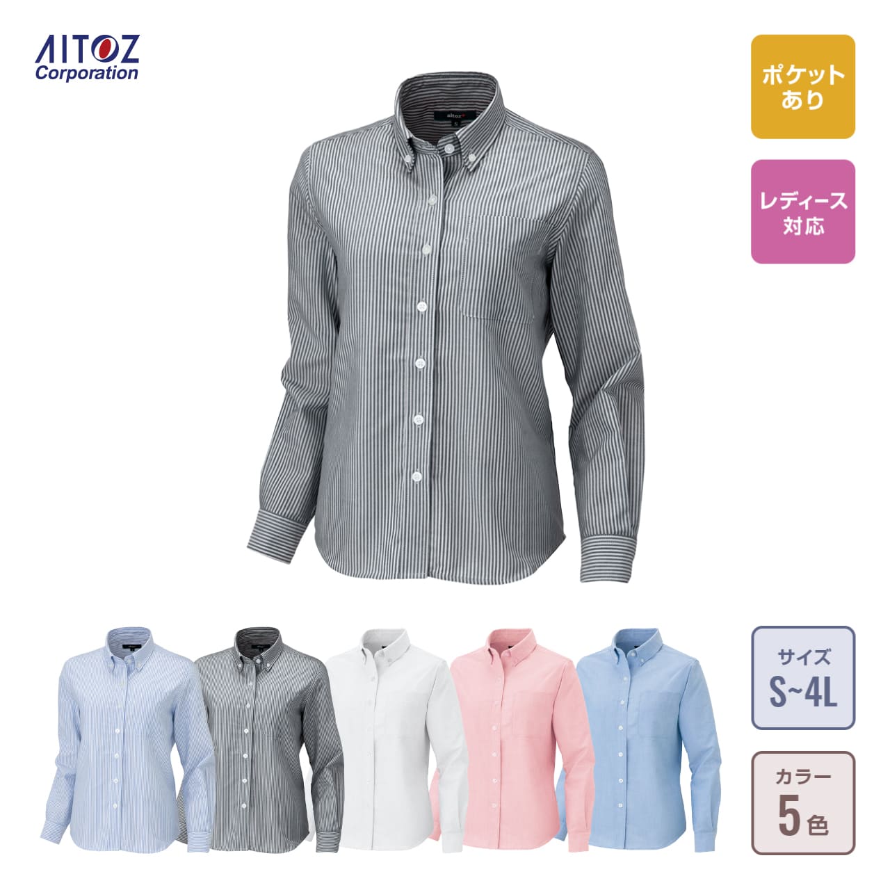 レディース 長袖オックスボタンダウンシャツ