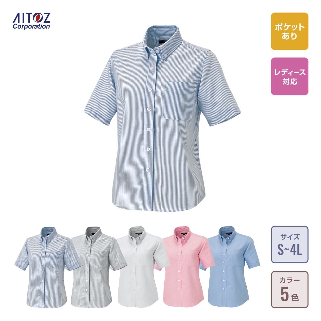 レディース半袖オックスボタンダウンシャツ