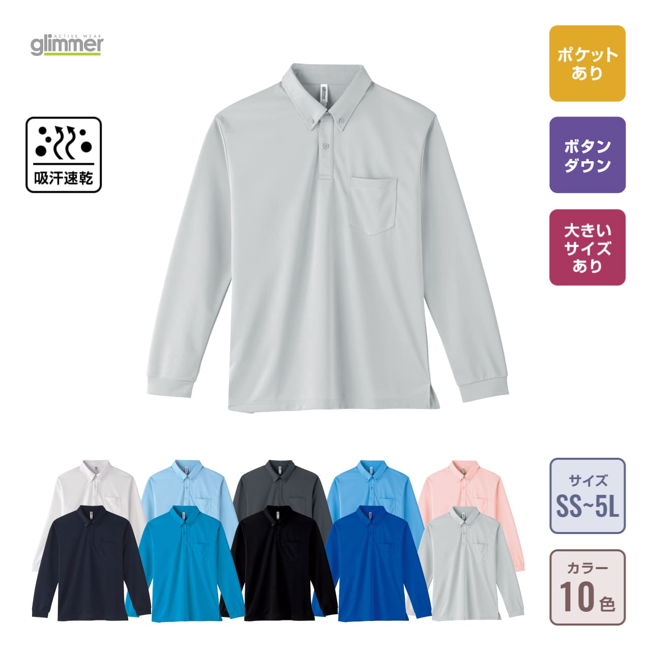 ドライボタンダウン長袖ポロシャツ