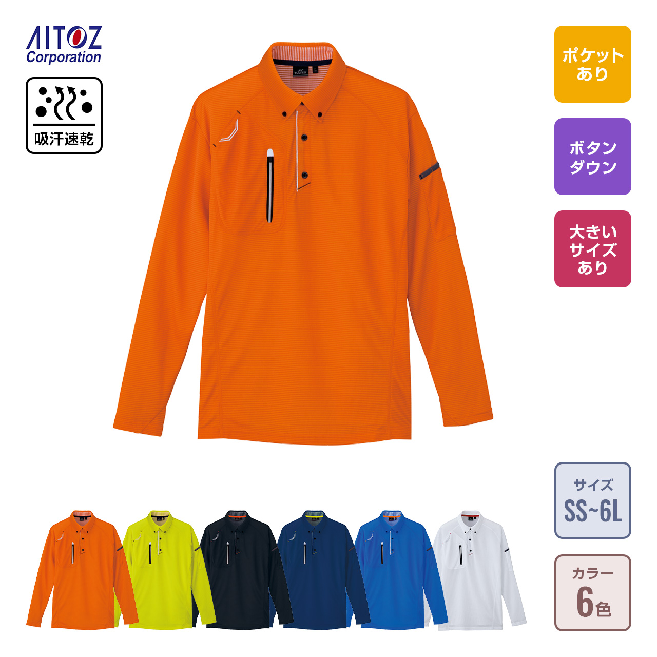 長袖ボタンダウンポロシャツ(男女兼用)
