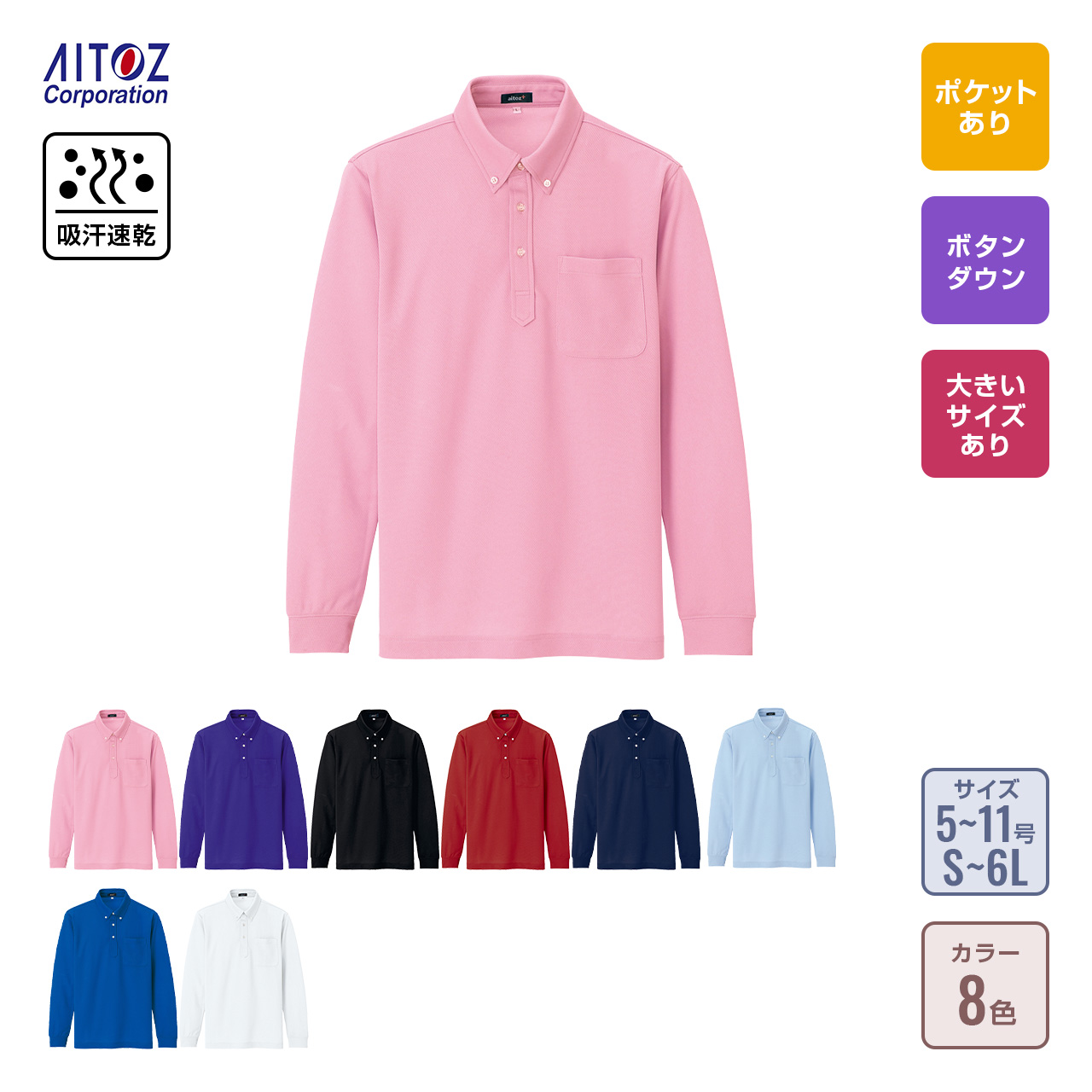 吸汗速乾(クールコンフォート)ボタンダウン長袖ポロシャツ