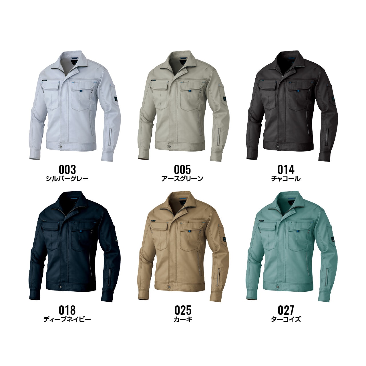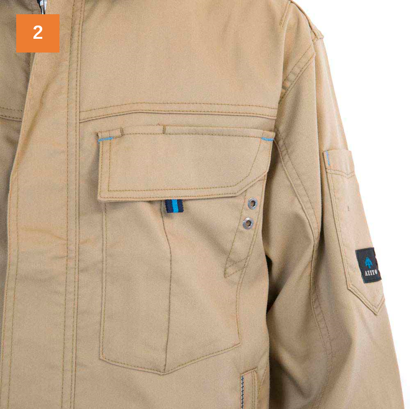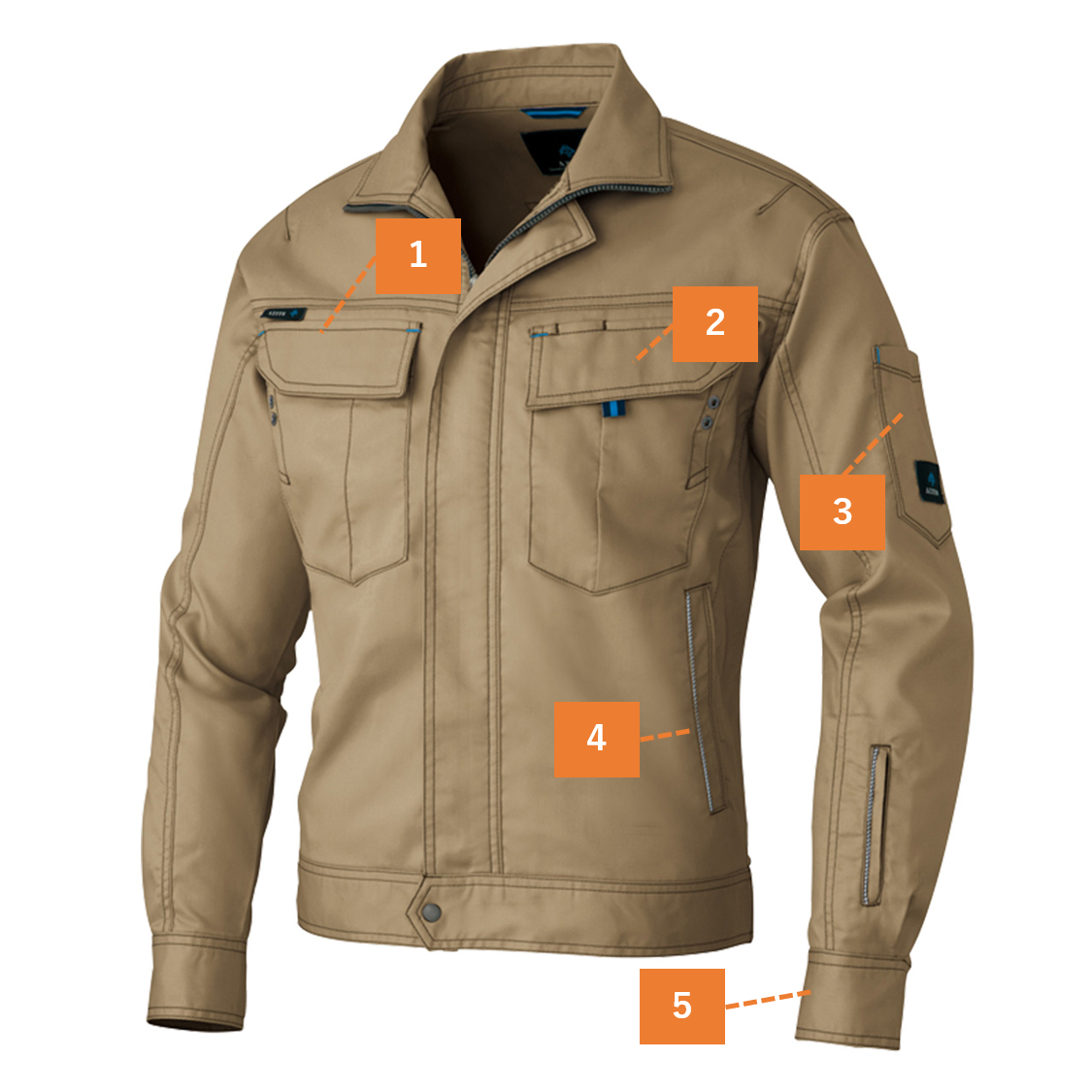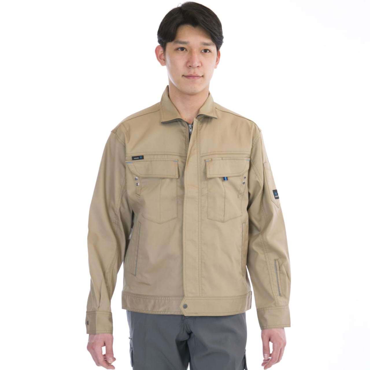 帯電防止・ストレッチ素材の長袖ブルゾン。袖ポケットや袖ペン差し等、様々なワークシーンに合わせた、使いやすさ充分の収納力!