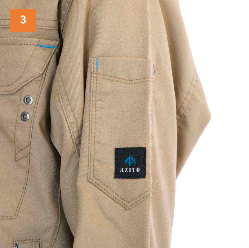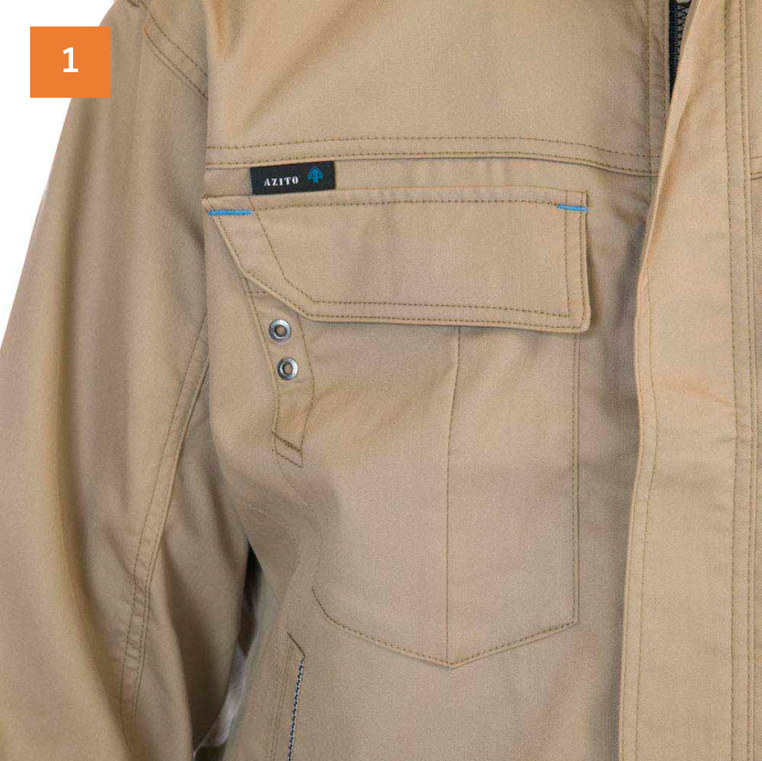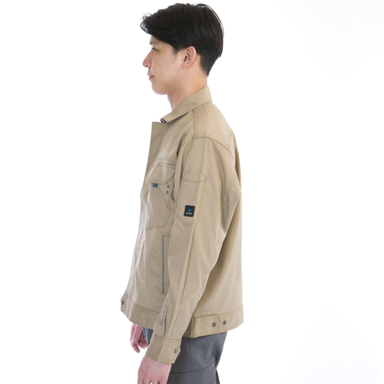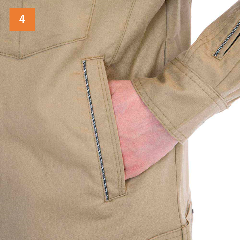 帯電防止・ストレッチ素材の長袖ブルゾン。袖ポケットや袖ペン差し等、様々なワークシーンに合わせた、使いやすさ充分の収納力!