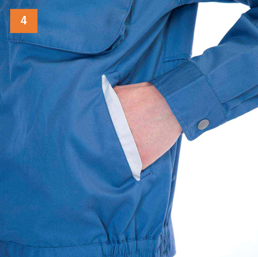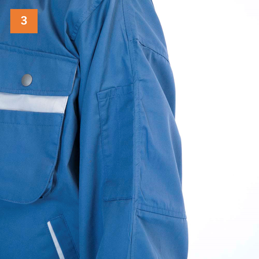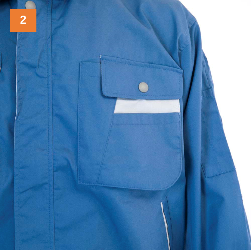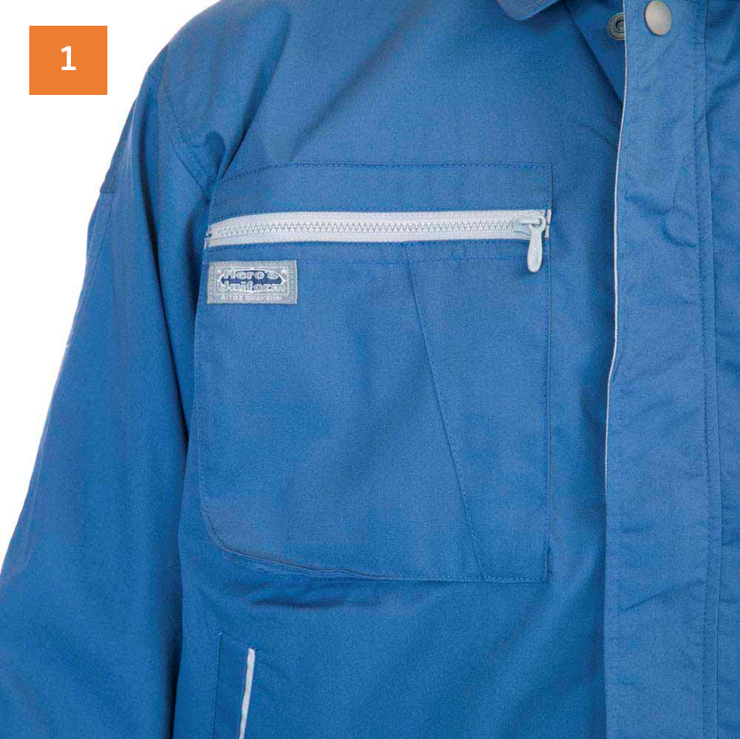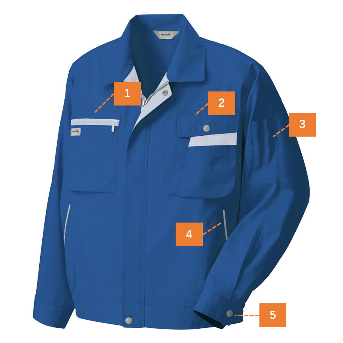 胸ポケットにはそれぞれファスナー、マチ付き。携帯電話固定用のループやサブポケットも。軽い着心地と高い機能性で様々な現場にマッチします。