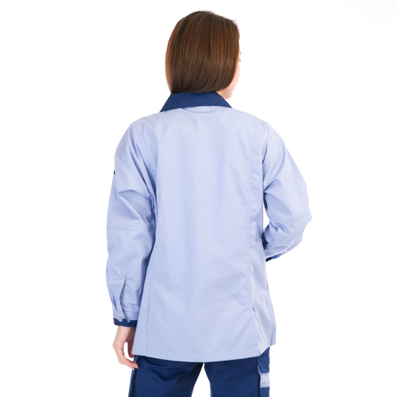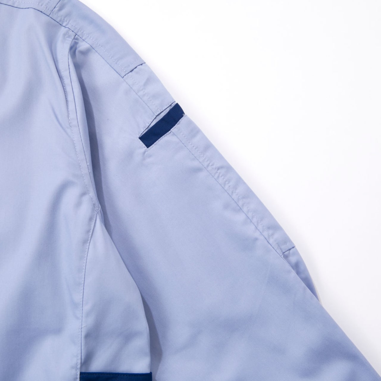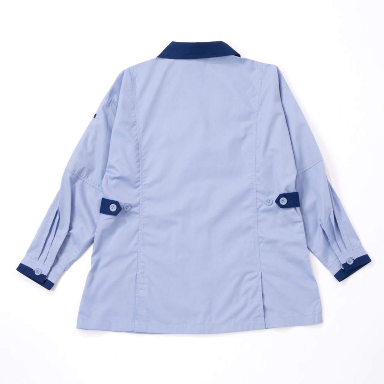ムービングカットを採用した長袖サマースモック。腕・肩などにかかるストレスを解消し、動かしやすくなっています。