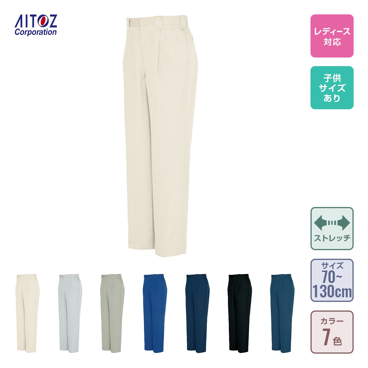 | ウエスト | 70 | 73 | 76 | 79 | 82 | 85 | 88 | 91 | 95 | 100 | 105 | 110 | 115 | 120 | 125 | 130 |