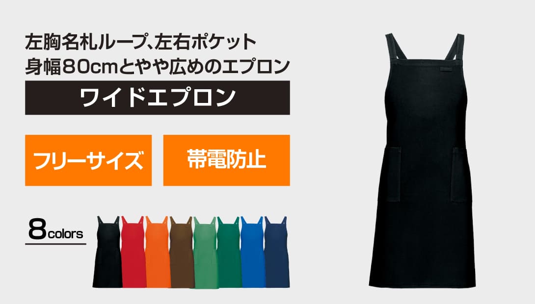 JIS-T8118取得のゆったりとしたシンプルワイドエプロン