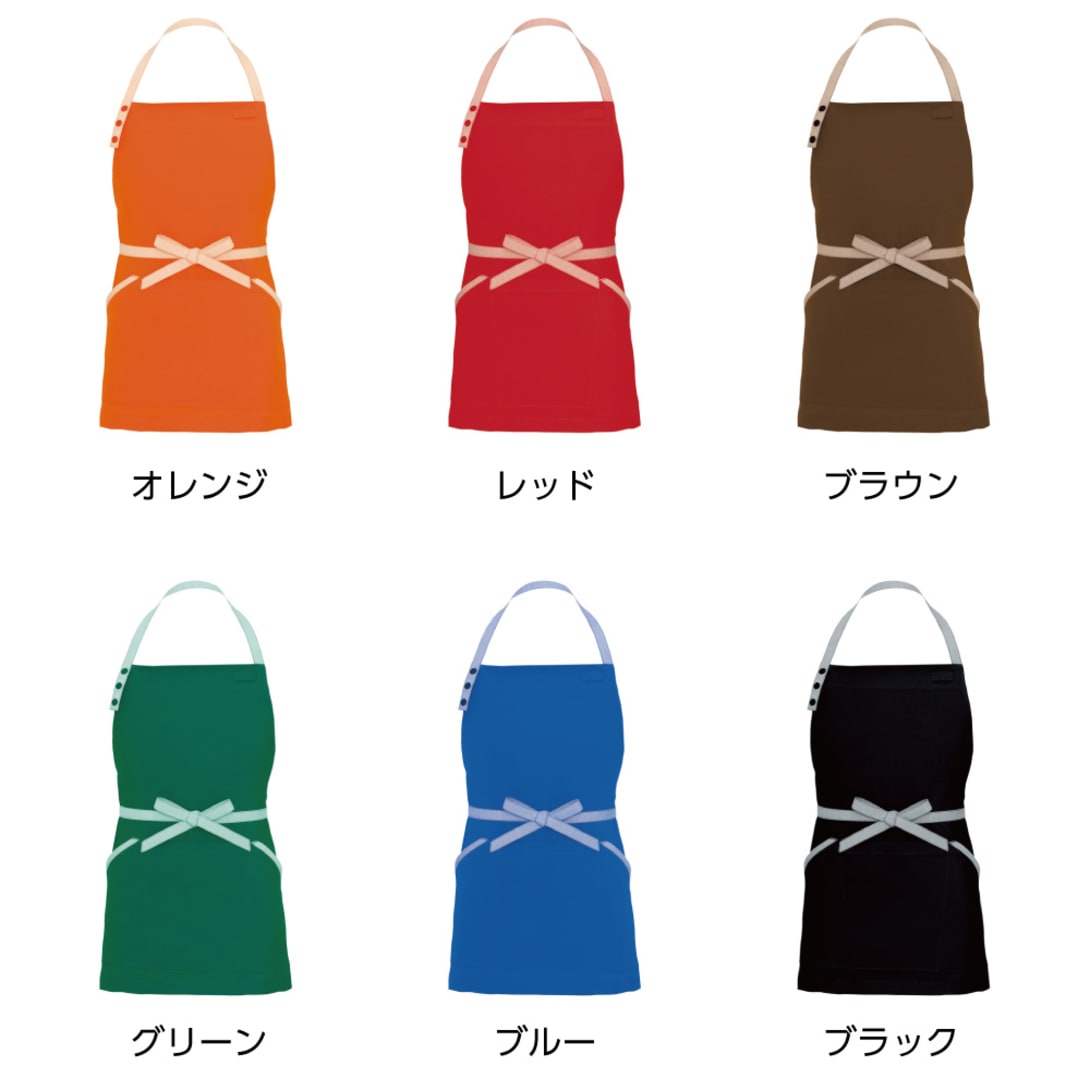 【JIS-T8118適合】帯電防止機能付き。首掛け仕様。首紐はドットボタンで調節可能(3段階)。左胸名札ループ付き。左右腰ポケット付き。右腰ポケット内側にペン差しポケット付き。ポリエステル100%のタッサー生地で耐久性に優れ、シワにもなりにくくイージーケア。フリーサイズで男女兼用。カラーバリエーションはオレンジ、レッド、ブラウン、グリーン、ブルー、ブラックの6色展開。同素材のロング丈の展開あり。